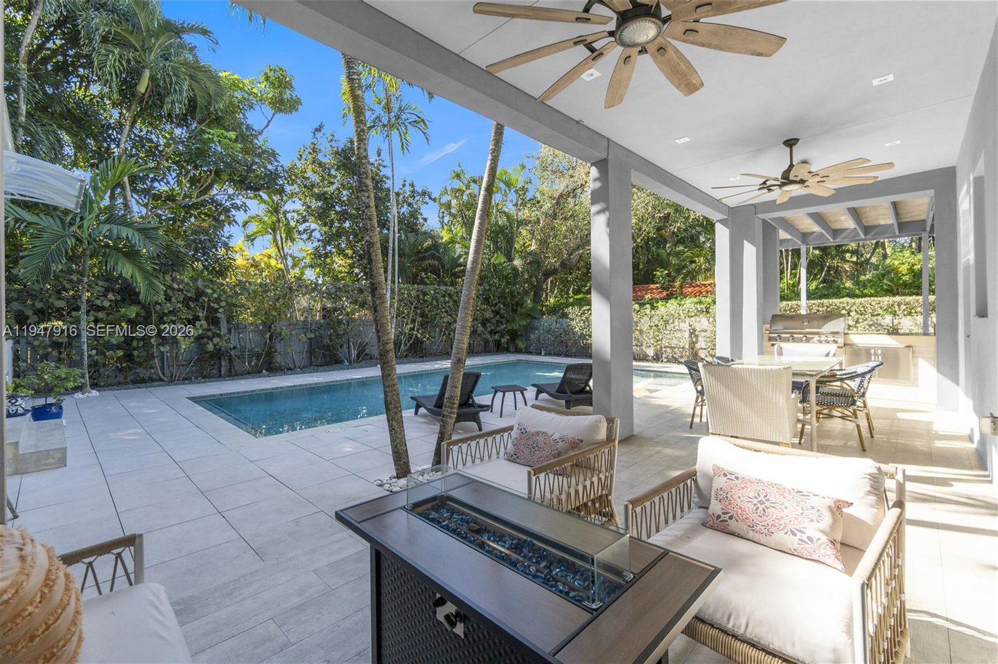 Treten Sie nach draußen in Ihre private tropische Oase mit einem Resort-ähnlichen Pool, einer überdachten Terrasse mit Grill und einer ruhigen Gartenkulisse, die durch ein MosquitoNix-System bereichert wird, um ganzjährig im Freien zu genießen. Zu den jüngsten Modernisierungen gehören zwei neue HLK-Systeme und ein neuer Poolheizer (2025), maßgefertigte Kleiderschränke (2025), aktualisierte Ventilatoren und Kronleuchter (2024) sowie neue Bewässerung vorne und hinten (2023). Weitere Highlights sind maßgeschneiderte Badezimmer, durchgehend geflieste Böden, ein privater Wasch- und Hauswirtschaftsraum sowie die Nähe zum Park und Gemeindezentrum in der 113th Street.