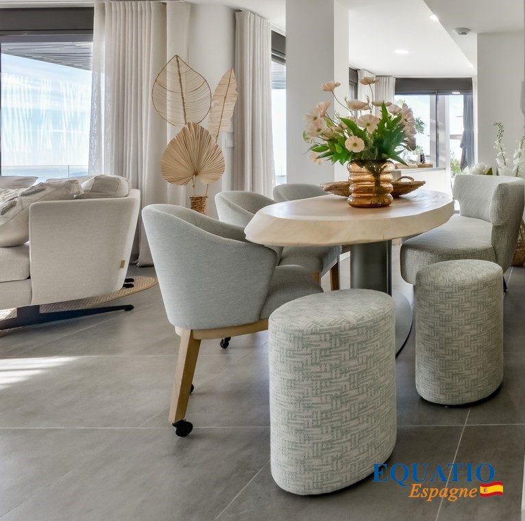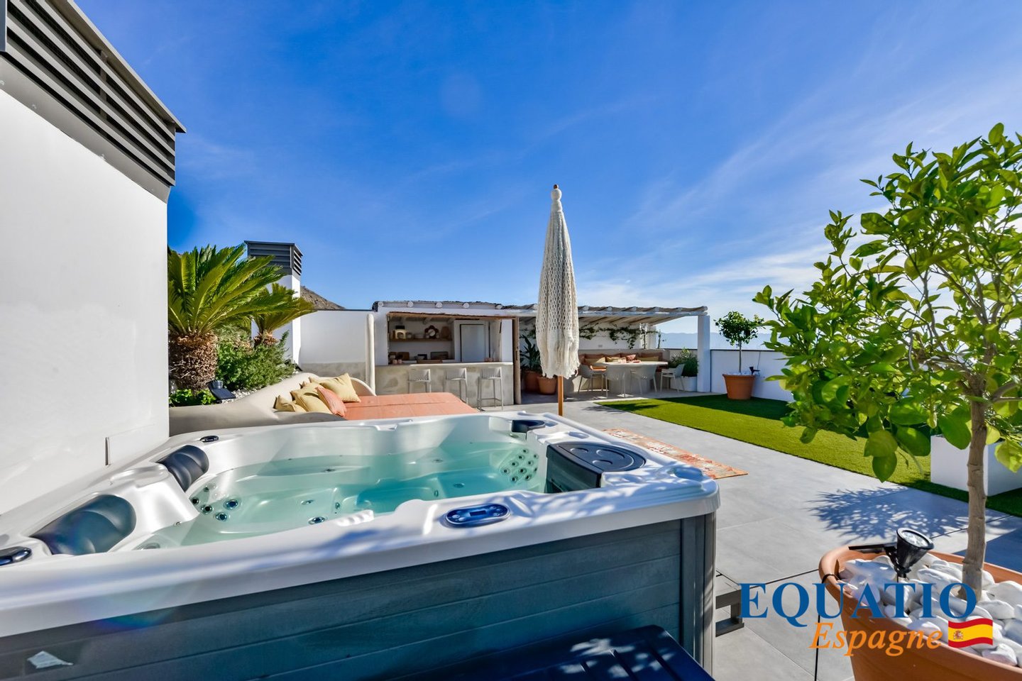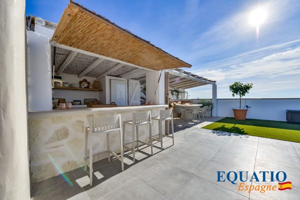 Magnificent Exclusive Penthouse with a large terrace of 107 m² in Ibiza style, its Chill-Out area, its friendly Bar . . . and its Private Jacuzzi . . . with incredible views.