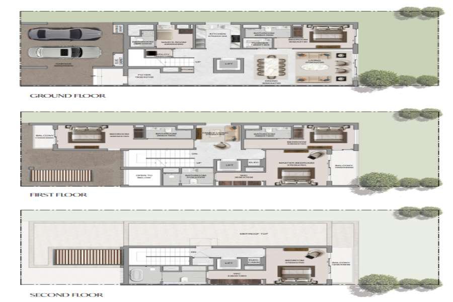 Die Villa selbst ist mit Smart-Home-Technologie ausgestattet, die dafür sorgt, dass Ihre Räumlichkeiten modern und effizient sind. Darüber hinaus verfügen ausgewählte Villen (wie die in The Grove) über private Swimmingpools, interne Aufzüge und Dachterrassen, die ein luxuriöses und gehobenes Wohnerlebnis bieten. Auch die Sicherheit hat höchste Priorität: Eine 24/7-Gated Community, CCTV-Überwachung und ein kontrollierter Zugang sorgen dafür, dass Sie sich keine Sorgen machen müssen.
