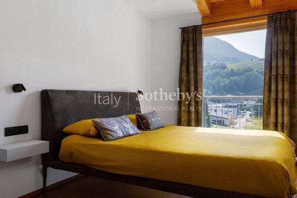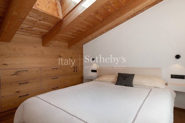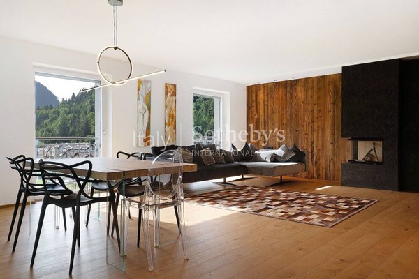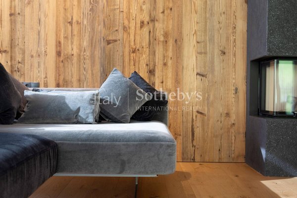 Am Rande von Ortisei, in einer ruhigen und privaten Lage, bietet diese Wohnung gut geschnittene Räume und eine Einrichtung im zeitgenössischen alpinen Stil, die traditionelle Bergakzente mit modernen, eleganten Linien verbindet.