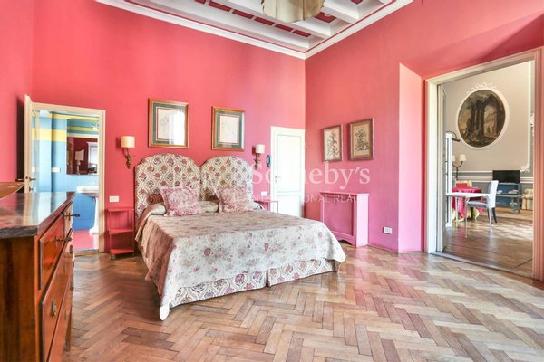 In the historic center of Florence, this spacious one-bedroom apartment is located within a 16th-century palazzo, which many critics believe to be the only residence ever designed by Raphael.The apartment combines the charm