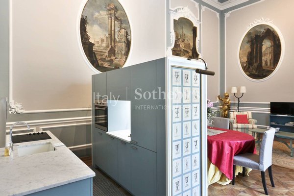 Im historischen Zentrum von Florenz befindet sich diese großzügige Einzimmerwohnung mit einem Schlafzimmer in einem Palazzo aus dem 16. Jahrhundert, den viele Kritiker als die einzige von Raffael entworfene Residenz ansehen.
