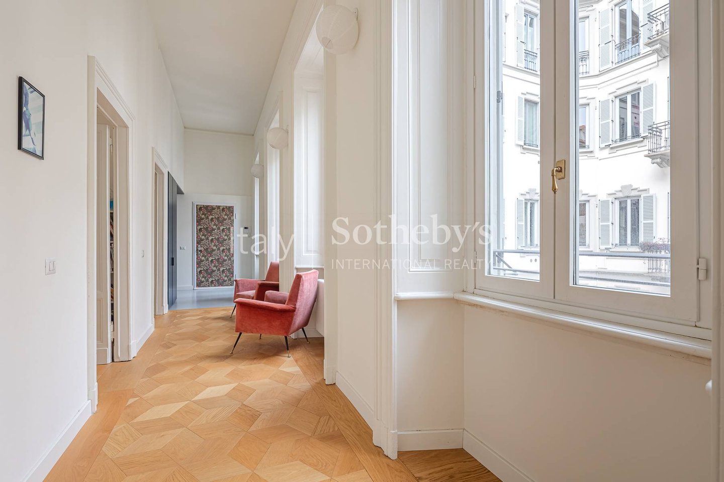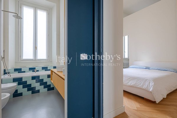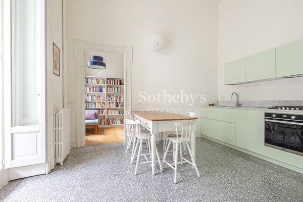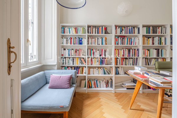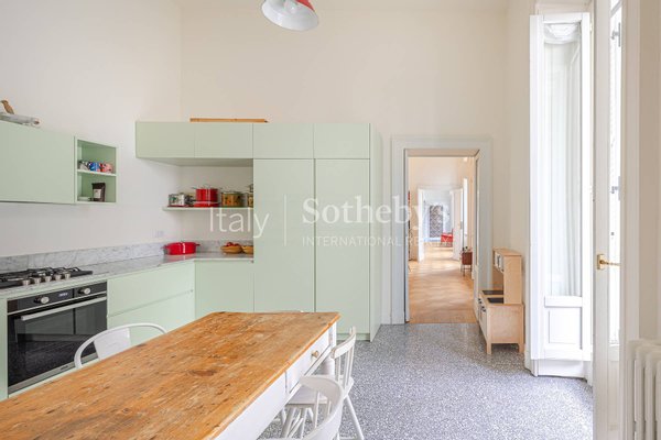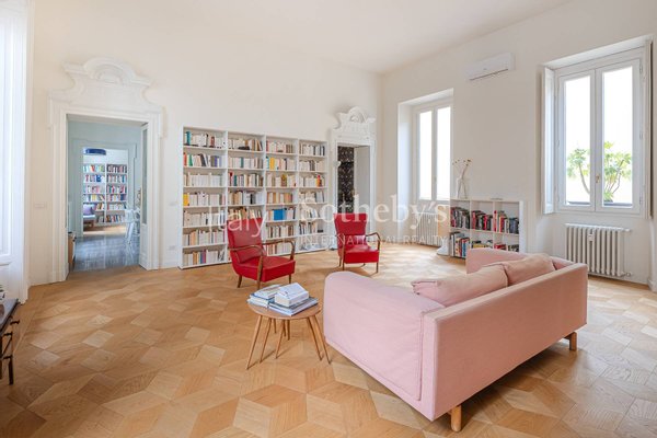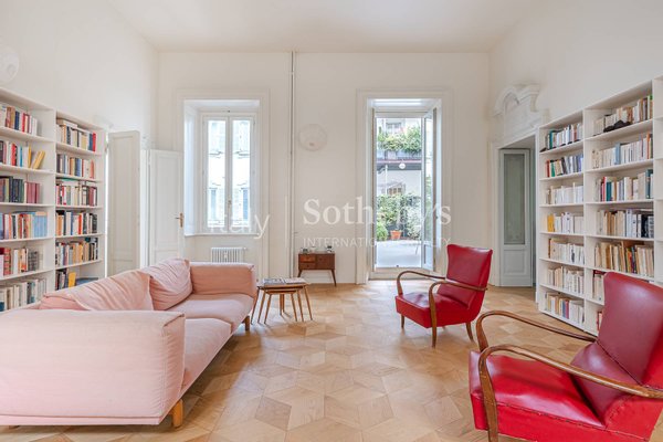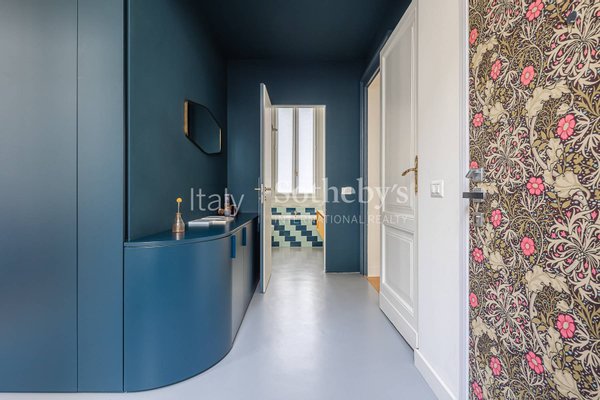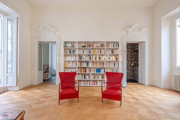 In der Foro Buonaparte, in einem eleganten Gebäude aus dem späten 19. Jahrhundert, das 2022 einer umfassenden Sanierung der Gemeinschaftsbereiche unterzogen wurde, befindet sich eine repräsentative Residenz im zweiten Stock mit Aufzug und privater Te