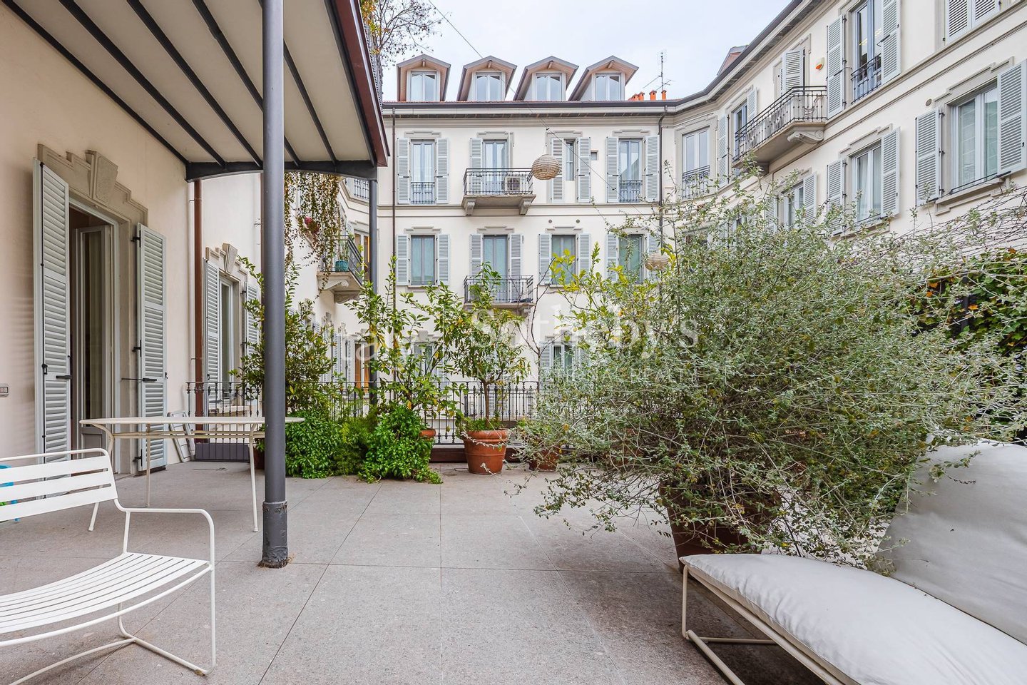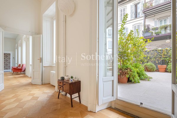 In der Foro Buonaparte, in einem eleganten Gebäude aus dem späten 19. Jahrhundert, das 2022 einer umfassenden Sanierung der Gemeinschaftsbereiche unterzogen wurde, befindet sich eine repräsentative Residenz im zweiten Stock mit Aufzug und privater Terrasse.