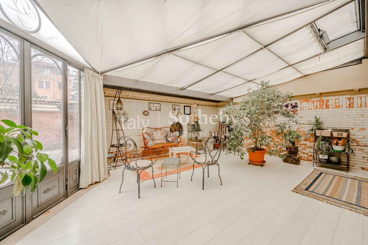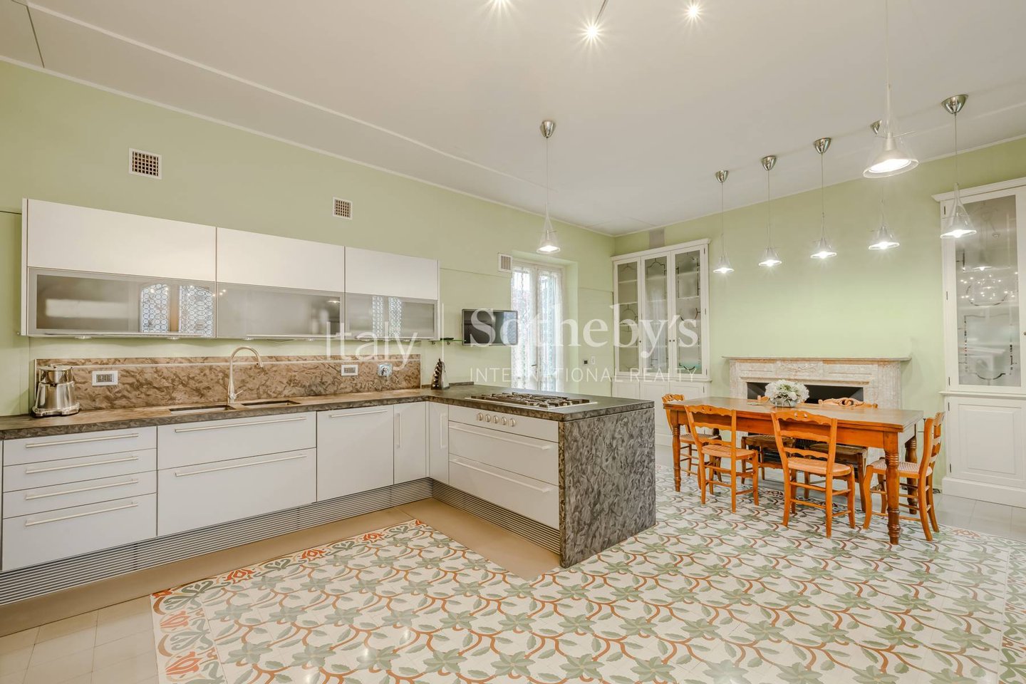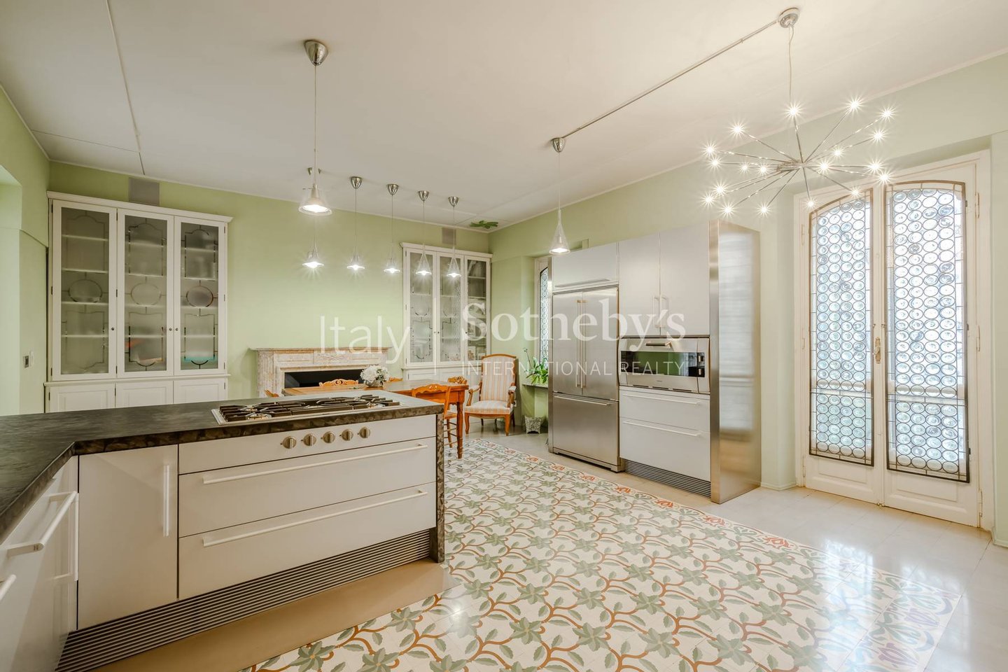 Gegenüber der historischen Fontana dei Dodici Mesi im Parco del Valentino befindet sich diese Liberty-Villa aus dem frühen 20. Jahrhundert, eingebettet in eine elegante und ruhig