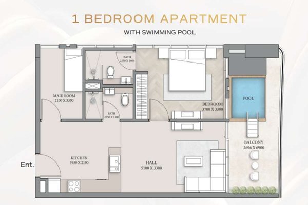 Empire Garden 1BHK+maidsroom+pool APT-DV-9560