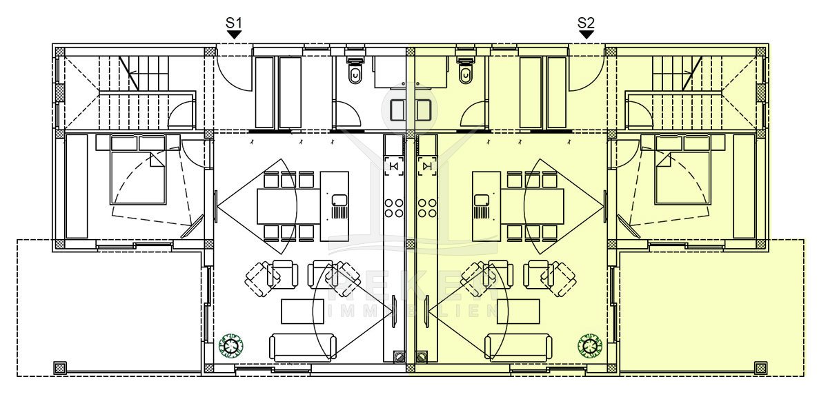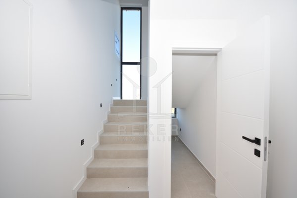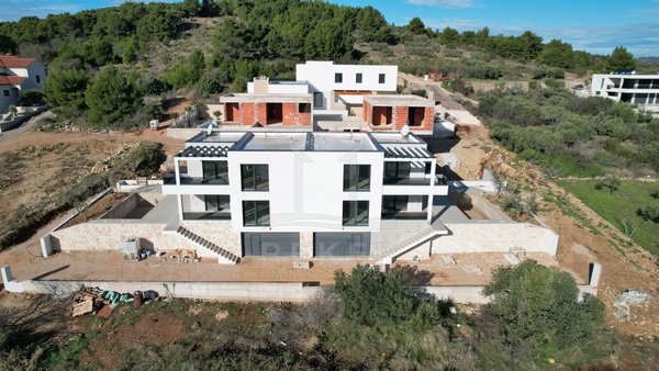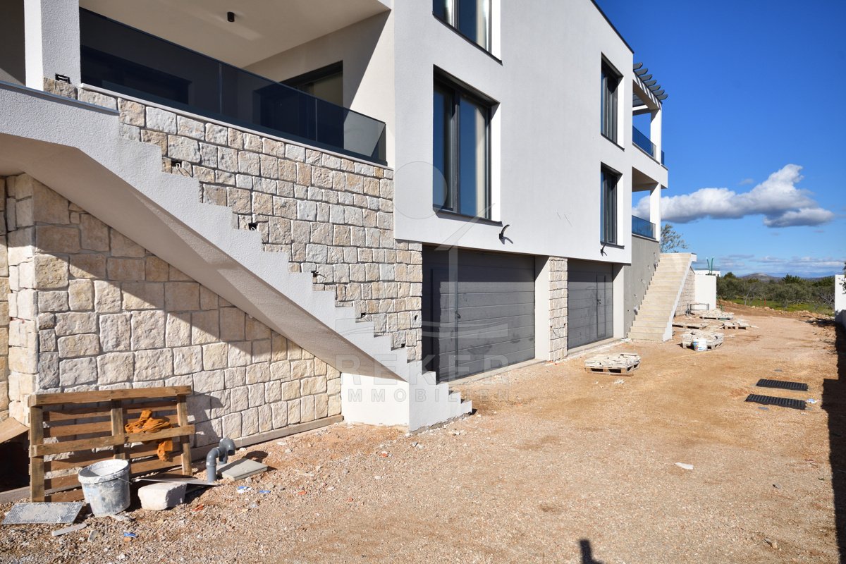 In ruhiger Lage von Vodice, rund 1.600 m vom Ortszentrum und etwa 1.300 m vom Strand entfernt, entsteht diese moderne Doppelhaushälfte mit freiem Blick auf das Meer. Die Umgebung zeigt sich sonnig, gepflegt und naturnah. Eine passende Wahl für Käufer, die Ruhe schätzen und kurze Wege nicht missen möchten. Zwei Stellplätze in der Garage bieten Komfort und Sicherheit direkt im Haus.