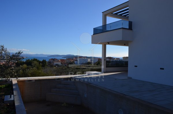 Meerblick, Pool, Terrasse und Top-Bauqualität: Diese Doppelhaushälfte in Vodice bietet alles, was ein Zuhause an der Adriaküste besonders macht. Hochwertig gebaut, ruhig gelegen und perfekt für Familien oder Komfortkäufer, die Wert auf Stil legen.