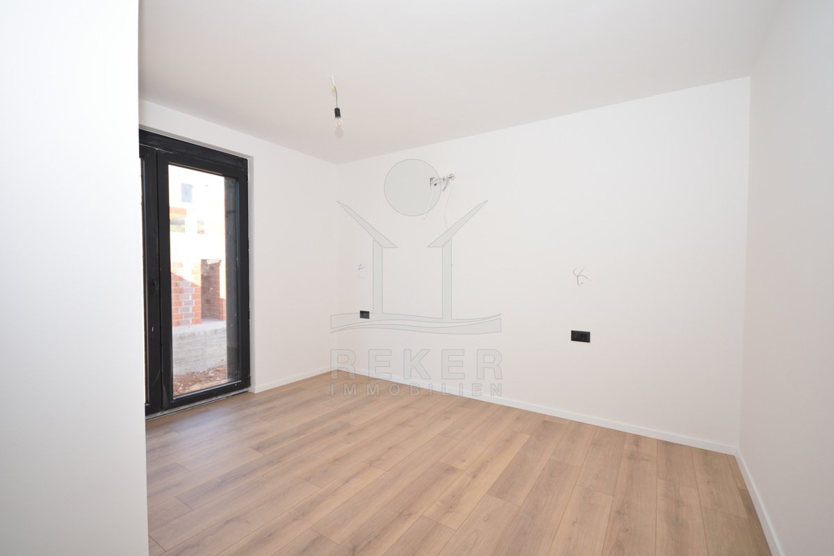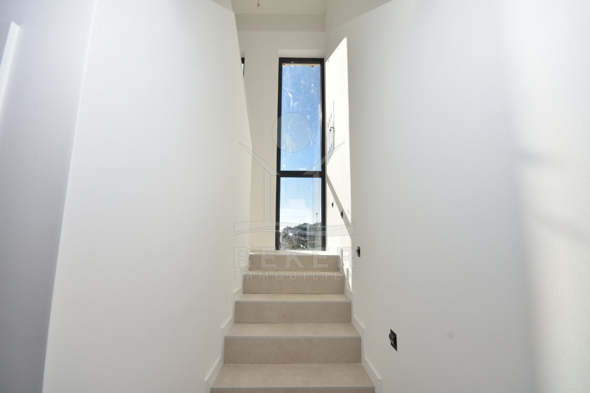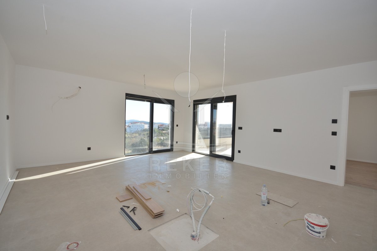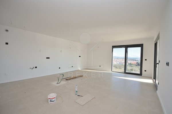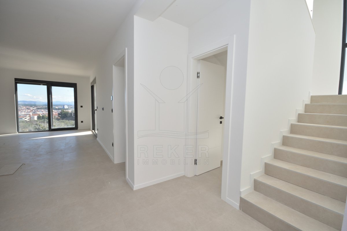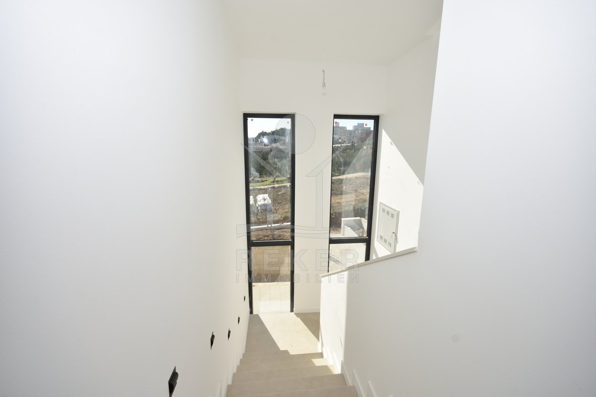 In ruhiger Lage von Vodice, rund 1.600 m vom Ortszentrum und etwa 1.300 m vom Strand entfernt, entsteht diese moderne Doppelhaushälfte mit freiem Blick auf das Meer. Die Umgebung zeigt sich sonnig, gepflegt und naturnah. Eine passende Wahl für Käufer, die Ruhe schätzen und kurze Wege nicht missen möchten. Zwei Stellplätze in der Garage bieten Komfort und Sicherheit direkt im Haus.