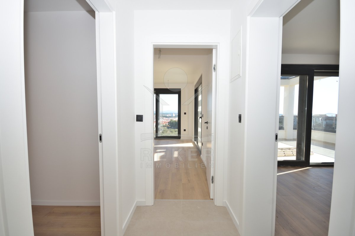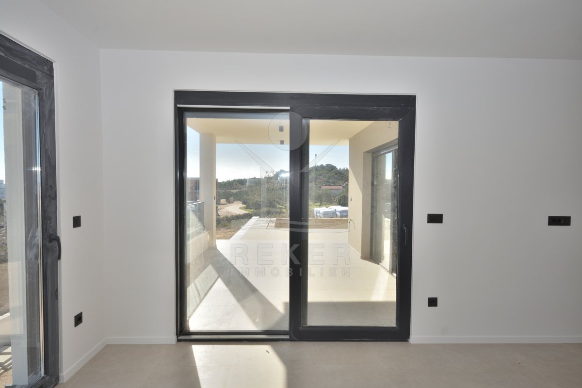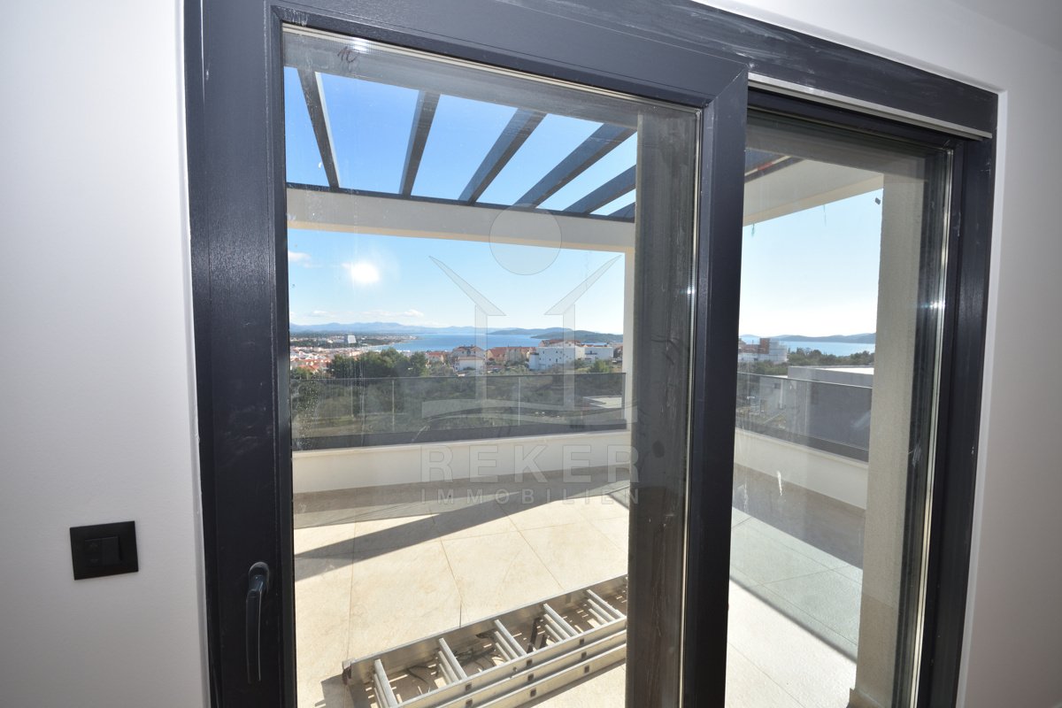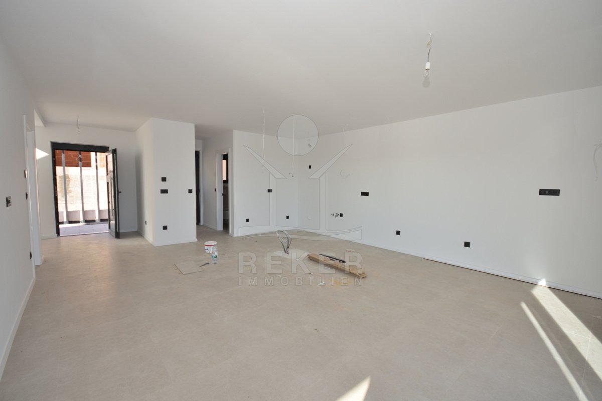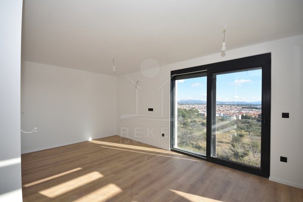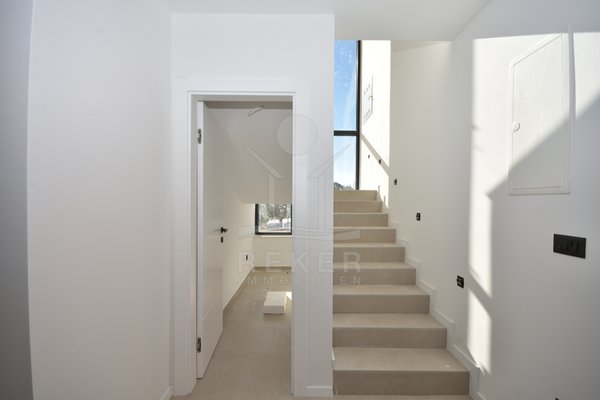 In ruhiger Lage von Vodice, rund 1.600 m vom Ortszentrum und etwa 1.300 m vom Strand entfernt, entsteht diese moderne Doppelhaushälfte mit freiem Blick auf das Meer. Die Umgebung zeigt sich sonnig, gepflegt und naturnah. Eine passende Wahl für Käufer, die Ruhe schätzen und kurze Wege nicht missen möchten. Zwei Stellplätze in der Garage bieten Komfort und Sicherheit direkt im Haus.