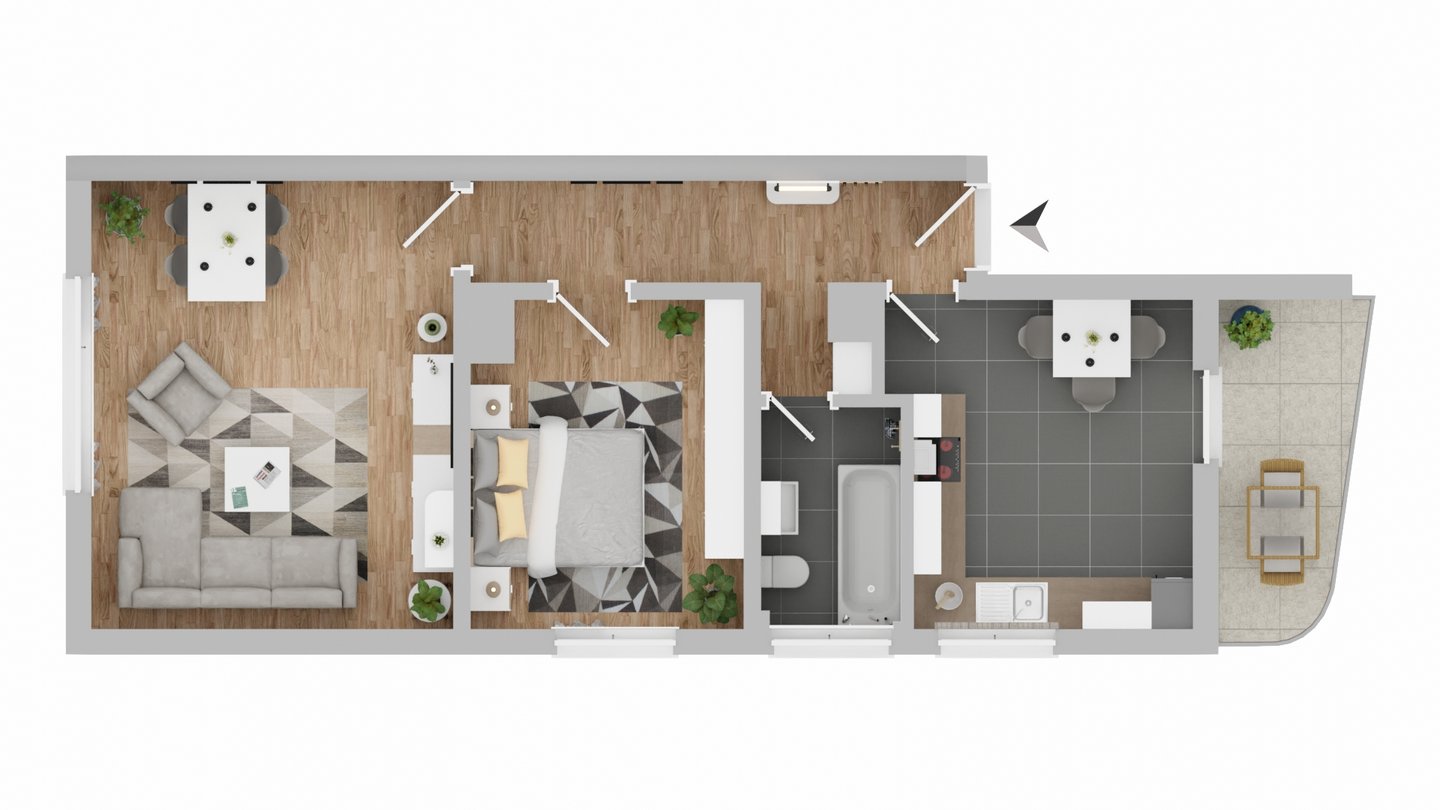 Den Abschluss bildet das großzügige Wohn- und Esszimmer, das als Herzstück der Wohnung überzeugt. Große Fenster sorgen für viel Tageslicht und eine helle, freundliche Atmosphäre, in der man sich sofort wohlfühlt. Der Raum ist vielseitig nutzbar und bietet ausreichend Platz für entspannte Abende, gesellige Treffen oder gemütliche Stunden auf dem Sofa.