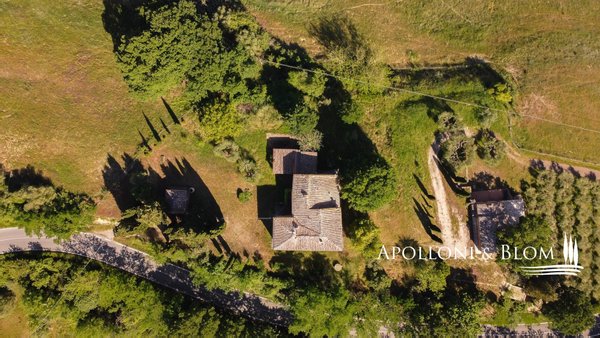 Bauernhaus aus Stein aus dem 18. Jahrhundert mit kleiner Kirche und Garten - Asciano, Siena