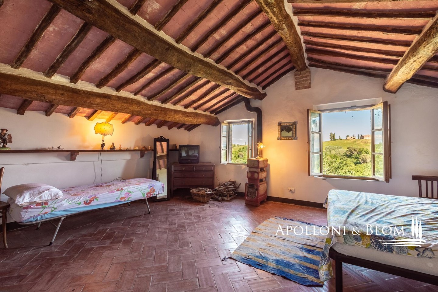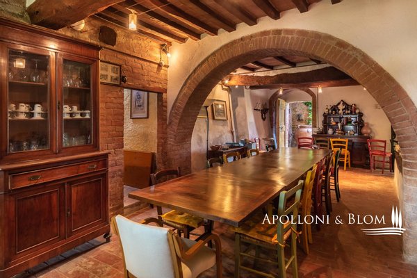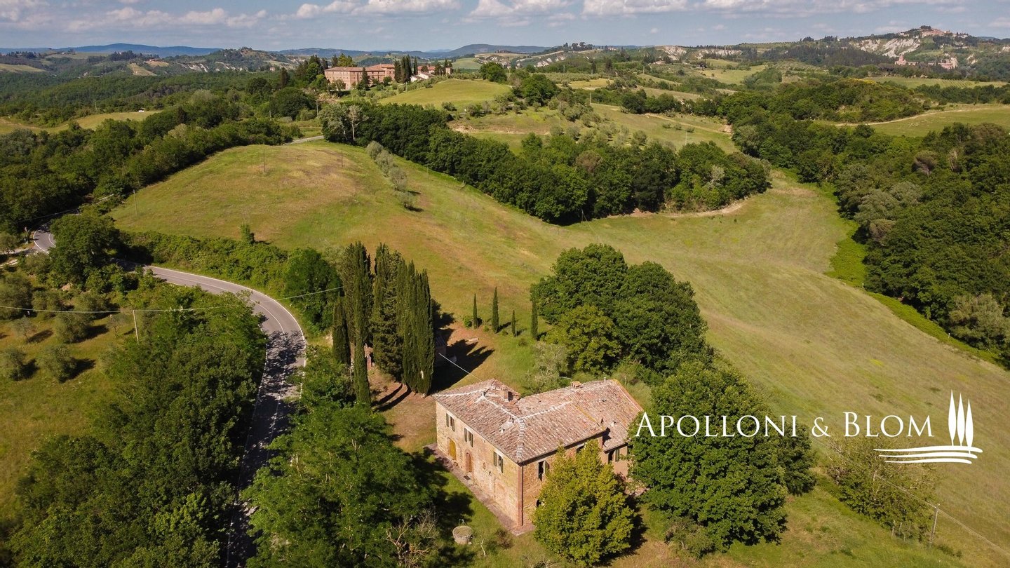 Mit Blick auf die Crete Senesi, Steinbauernhaus aus dem 18. Jahrhundert mit kleiner Kirche und Garten zwischen Buonconvento und Asciano, südlich von Siena, zu verkaufen. Einfacher Zugang über eine Zufahrt mit hohen Zypressen im Garten. Das 475 Quadratmeter große Bauernhaus mit Steinfassade und drei Etagen hat typisch toskanischen Charakter. Es wurde im Laufe der Jahre in mehreren Etappen renoviert, ist in gutem Zustand und gut gepflegt, benötigt aber ein "Upgrade" mit modernem Komfort. Eine große überdachte Loggia beherbergt den Außenwohnbereich mit Essbereich und Kamin. Die Innenräume sind mit originalen Materialien wie großen Ziegelbögen, Holzbalken, Kaminen, freiliegenden Ziegelwänden und Terrakottaböden ausgestattet, wobei sich Wohnräume und alte Küchen aneinanderreihen und eine faszinierende Wohnung voller Originalcharakter schaffen. Die Wohnräume befinden sich sowohl im Erdgeschoss als auch im ersten Stock, und es gibt insgesamt vier Schlafzimmer mit Doppelbetten. Es liegt in einer der historisch und landschaftlich interessantesten Gegenden der Toskana, an der alten Straße zwischen Asciano, San Giovanni d'Asso, der Abtei von Monte Oliveto und dem Dorf Buonconvento, mit Hügeln, Olivenhainen, Zypressenreihen und einem spektakulären Blick über die Schluchten der Crete Senesi bis hin zum Val d'Orcia. Es eignet sich hervorragend als Wohn- und Ferienhaus für Familie und Freunde oder als Unterkunft für Touristen und Reisende aus der ganzen Welt.