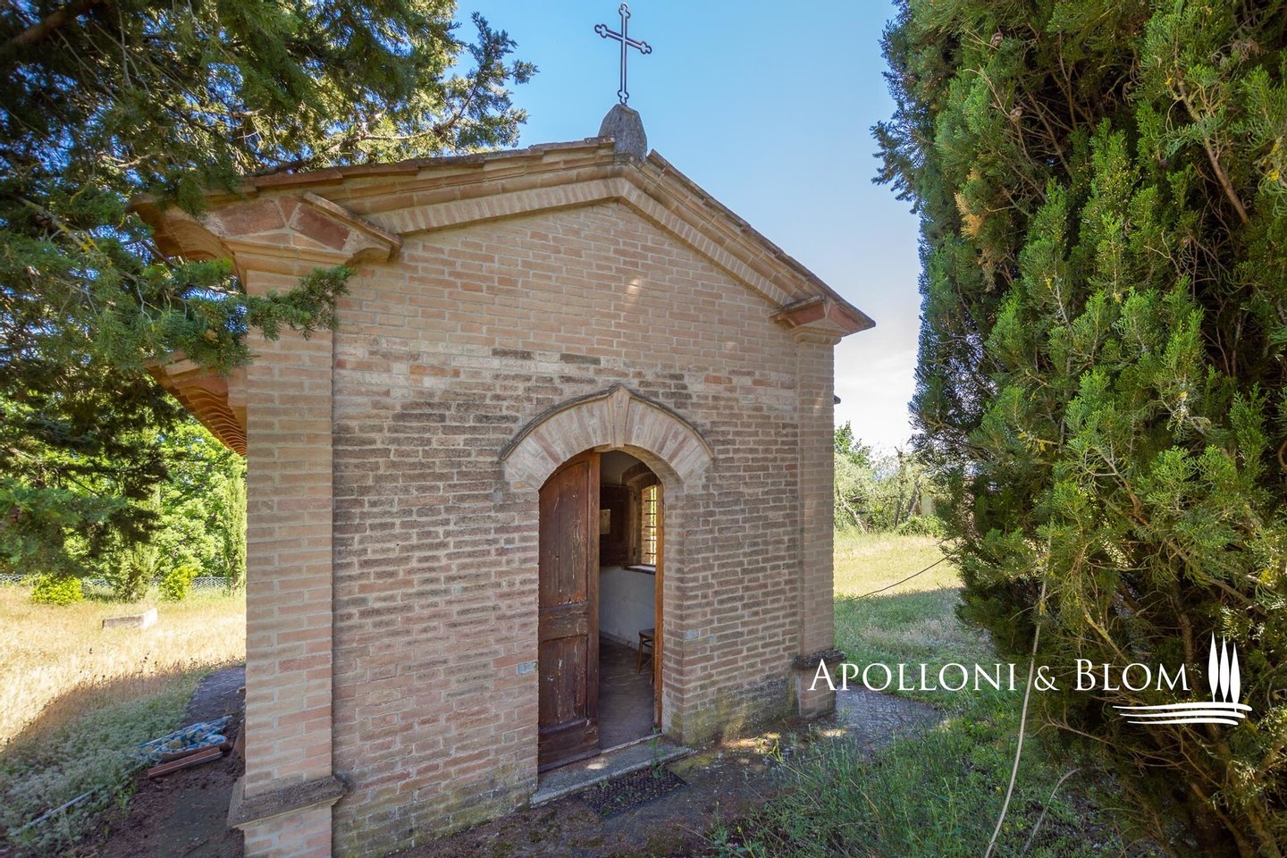 Bauernhaus aus Stein aus dem 18. Jahrhundert mit kleiner Kirche und Garten - Asciano, Siena