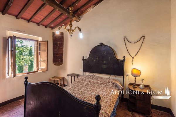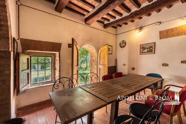 Mit Blick auf die Crete Senesi, Steinbauernhaus aus dem 18. Jahrhundert mit kleiner Kirche und Garten zwischen Buonconvento und Asciano, südlich von Siena, zu verkaufen. Einfacher Zugang über eine Zufahrt mit hohen Zypressen im Garten. Das 475 Quadratmeter große Bauernhaus mit Steinfassade und drei Etagen hat typisch toskanischen Charakter. Es wurde im Laufe der Jahre in mehreren Etappen renoviert, ist in gutem Zustand und gut gepflegt, benötigt aber ein "Upgrade" mit modernem Komfort. Eine große überdachte Loggia beherbergt den Außenwohnbereich mit Essbereich und Kamin. Die Innenräume sind mit originalen Materialien wie großen Ziegelbögen, Holzbalken, Kaminen, freiliegenden Ziegelwänden und Terrakottaböden ausgestattet, wobei sich Wohnräume und alte Küchen aneinanderreihen und eine faszinierende Wohnung voller Originalcharakter schaffen. Die Wohnräume befinden sich sowohl im Erdgeschoss als auch im ersten Stock, und es gibt insgesamt vier Schlafzimmer mit Doppelbetten. Es liegt in einer der historisch und landschaftlich interessantesten Gegenden der Toskana, an der alten Straße zwischen Asciano, San Giovanni d'Asso, der Abtei von Monte Oliveto und dem Dorf Buonconvento, mit Hügeln, Olivenhainen, Zypressenreihen und einem spektakulären Blick über die Schluchten der Crete Senesi bis hin zum Val d'Orcia. Es eignet sich hervorragend als Wohn- und Ferienhaus für Familie und Freunde oder als Unterkunft für Touristen und Reisende aus der ganzen Welt.