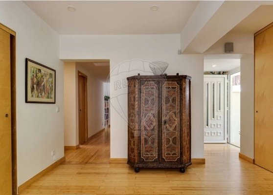 The ground floor consists of a large entrance area, a living room with unequal levels, glazed that allows abundant natural light, fireplace, underfloor heating and central heating and a modern kitchen, open to the living room, recently renovated, equipped with top-of-the-range appliances and dining area, which provides an environment with maximum comfort and elegance. This ground floor is also made up of 3 more bedrooms, one used as an office, a social toilet and a full bathroom. From the windows of the various spaces, you can enjoy views of the gardens, bringing the outside inside the house.