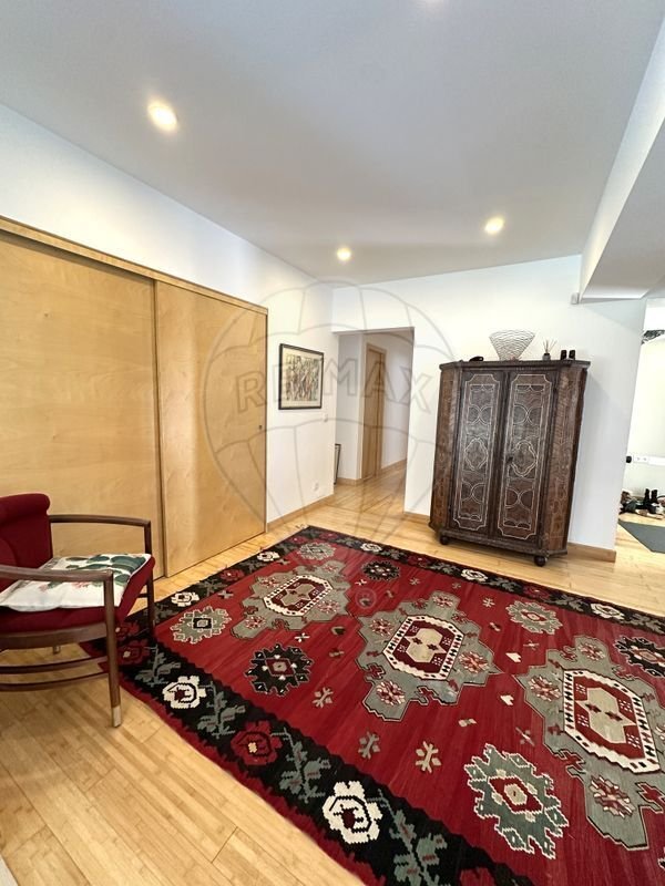 The ground floor consists of a large entrance area, a living room with unequal levels, glazed that allows abundant natural light, fireplace, underfloor heating and central heating and a modern kitchen, open to the living room, recently renovated, equipped with top-of-the-range appliances and dining area, which provides an environment with maximum comfort and elegance. This ground floor is also made up of 3 more bedrooms, one used as an office, a social toilet and a full bathroom. From the windows of the various spaces, you can enjoy views of the gardens, bringing the outside inside the house.