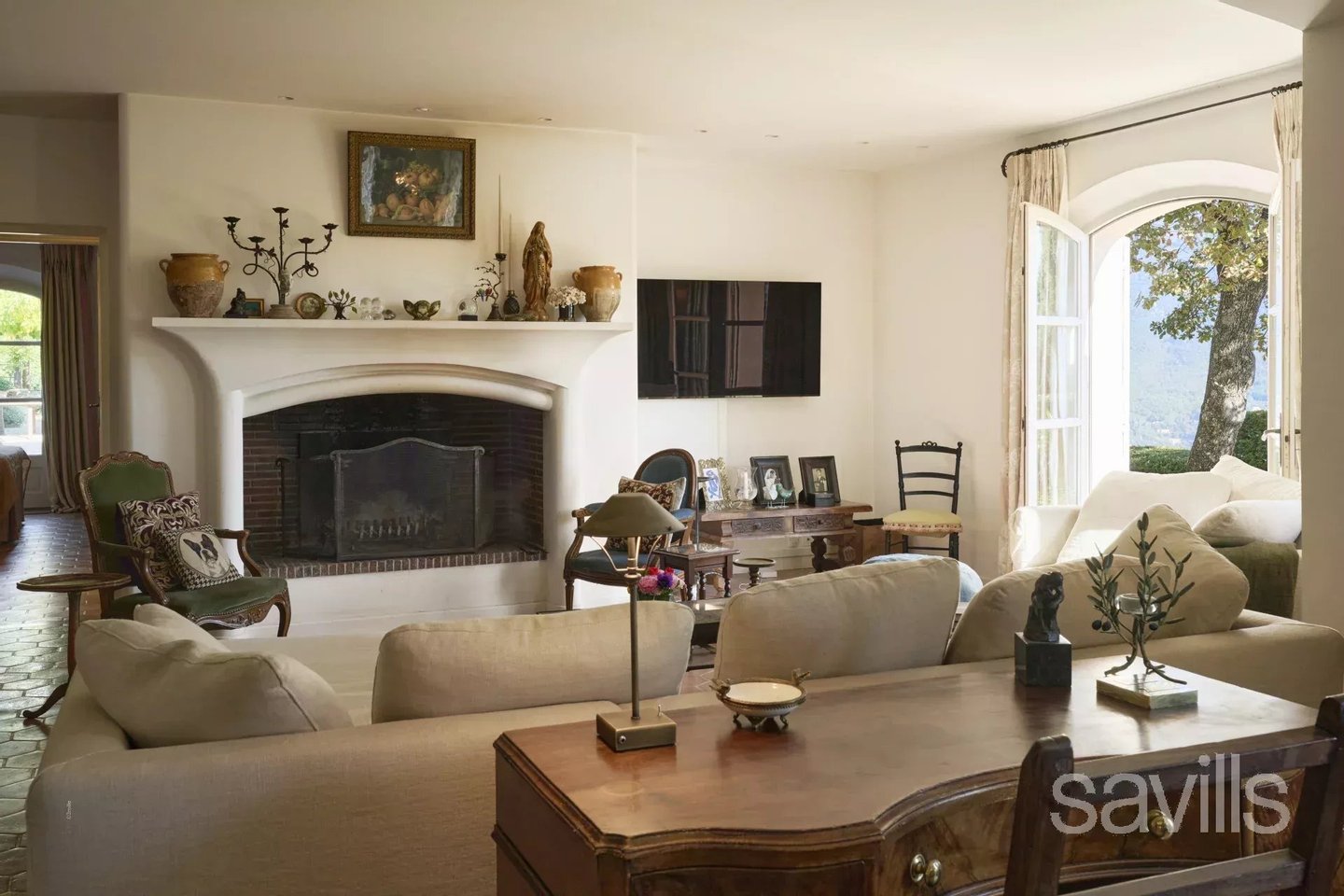 Nestled in a breathtaking natural setting, this exceptional Provençal estate perfectly captures the essence of the South of France. The elegant home blends timeless charm with meticulous craftsmanship. It features a spacious living room with a
