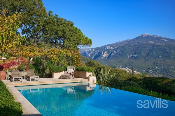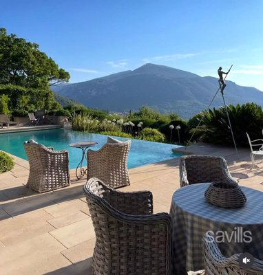 The fully fenced garden is a true paradise, offering sweeping views of the valleys, the picturesque village of Bar-sur-Loup, and the majestic Les Courmettes mountain. The grounds include a stunning heated magnesium infinity pool with a charming pool house/fitness studio, complete with a kitchen, shower, and toilet — perfect for entertaining or enjoying tranquil private moments. A fantastic pétanque court adds to the quintessential Provençal lifestyle.
