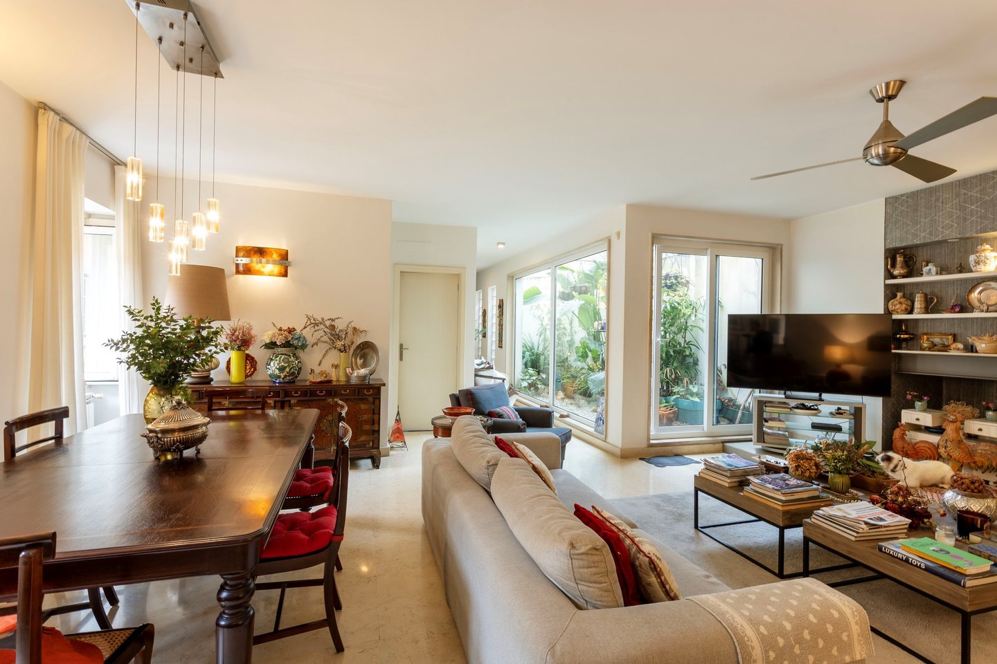 Reihenhaus mit 6 Schlafzimmern und zwei Suiten, Garage und Wintergarten, das natürliches Licht ins Wohnzimmer spendet, gelegen in Santos-o-Velho, weniger als 200 Meter von der französischen Botschaft entfernt, in einem der authentischsten, sichersten und wertvollsten Wohngebiete Lissabons.