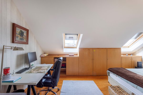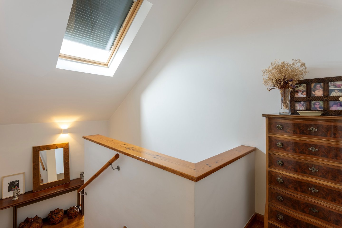 Das Erdgeschoss besteht aus einer Garage für 2 bis 3 Autos, einer Wäscherei und einem Lagerraum. Im ersten Stock befindet sich der soziale Bereich mit einem großen Wohnzimmer mit Kamin, funktionaler Küche, Gästebad und Zugang zum Wintergarten, der der Villa natürliches Licht und Charakter verleiht. Im zweiten Stock befindet sich die Master-Suite mit Umkleideraum und zwei Schlafzimmern, die von einem voll ausgestatteten Badezimmer bedient werden. Das oberste Stockwerk umfasst zwei große Schlafzimmer, ein gemeinsames Badezimmer und eine zusätzliche Suite, was eine sehr ausgewogene Organisation zwischen privaten und unterstützenden Bereichen ermöglicht.