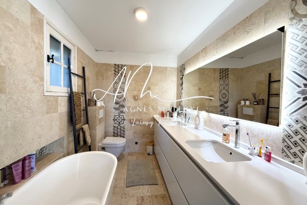 CAVALAIRE FACING SOUTH SEA - pretty villa from the 80s for 170m2 of living space built on a plot of 1100m2 not far from the city center. It consists of an entrance hall opening onto the living room, independent fitted kitchen, 03 bedrooms, bathroom, shower room and laundry room. On the ground floor: a 03-room apartment of 60m2 with 02 garages. To the great calm!