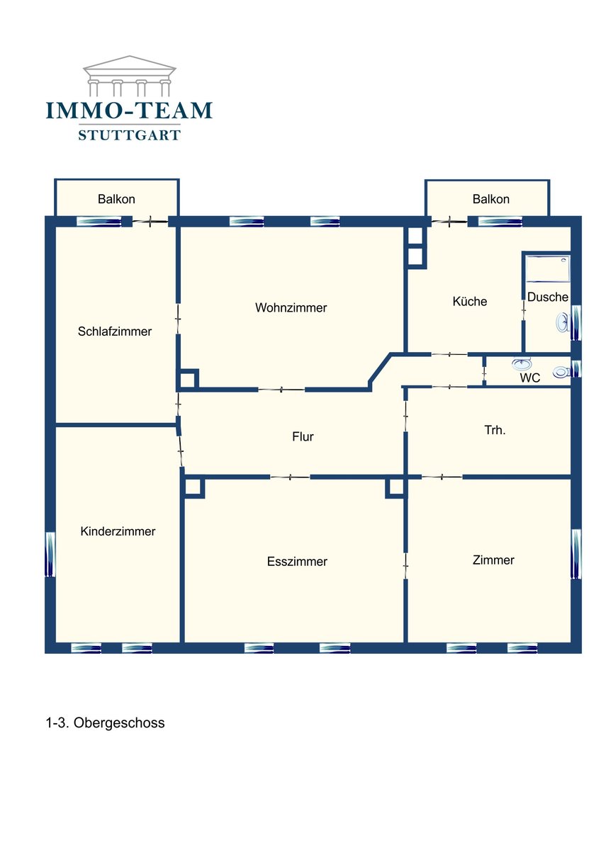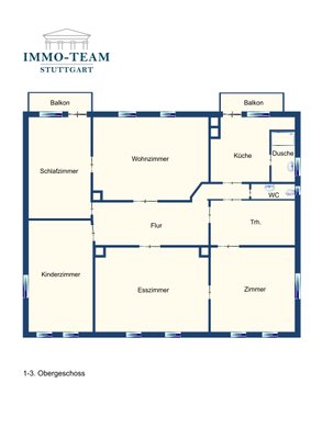 -1. Obergeschoss – 3-Zimmer-Wohnung, ca. 96 m² + 2 Balkone