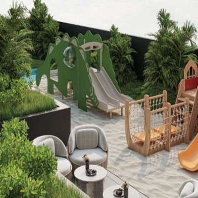 Fitnessbegeisterte werden den voll ausgestatteten Fitnessraum mit Technogym-Geräten zu schätzen wissen, ebenso wie die Yoga- und Wellness-Zonen für ganzheitliches Wohlbefinden. Kinder können sich auf den Spielplätzen im Innen- und Außenbereich austoben, während Familien auf dem Grillplatz auf dem Dach gemeinsam grillen können.
