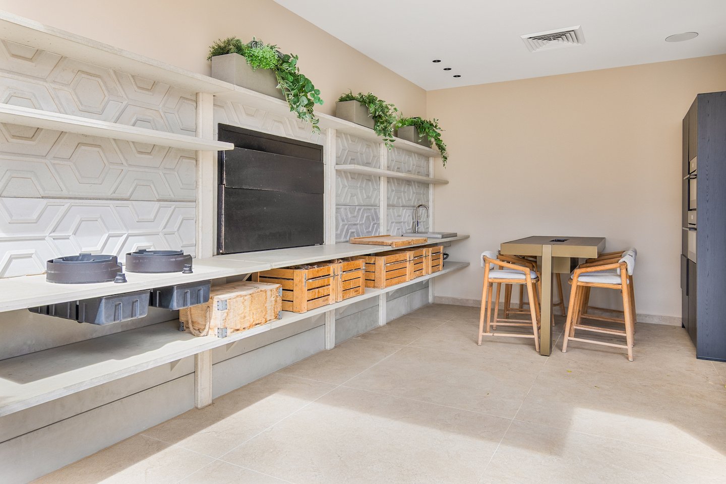 Mehrere beheizte Schwimmbäder und Whirlpools sind nahtlos in das Gelände integriert, darunter ein spektakulärer Grottenpool mit eigener Cocktailbar – ein intimes Resort-Erlebnis in völliger Privatsphäre. Im gesamten Anwesen laden professionelle Kochstationen erstklassige Unterhaltung ein, ausgestattet mit hochwertigen Geräten wie einem Pitt-Kochsystem, einem Grill, einem Wokherd und einem Teppanyaki-Grill. Eine vollständig klimatisierte Außenküche mit Kühlschränken und Eisbereitern sorgt für ein müheloses Hosting in jeder Jahreszeit.