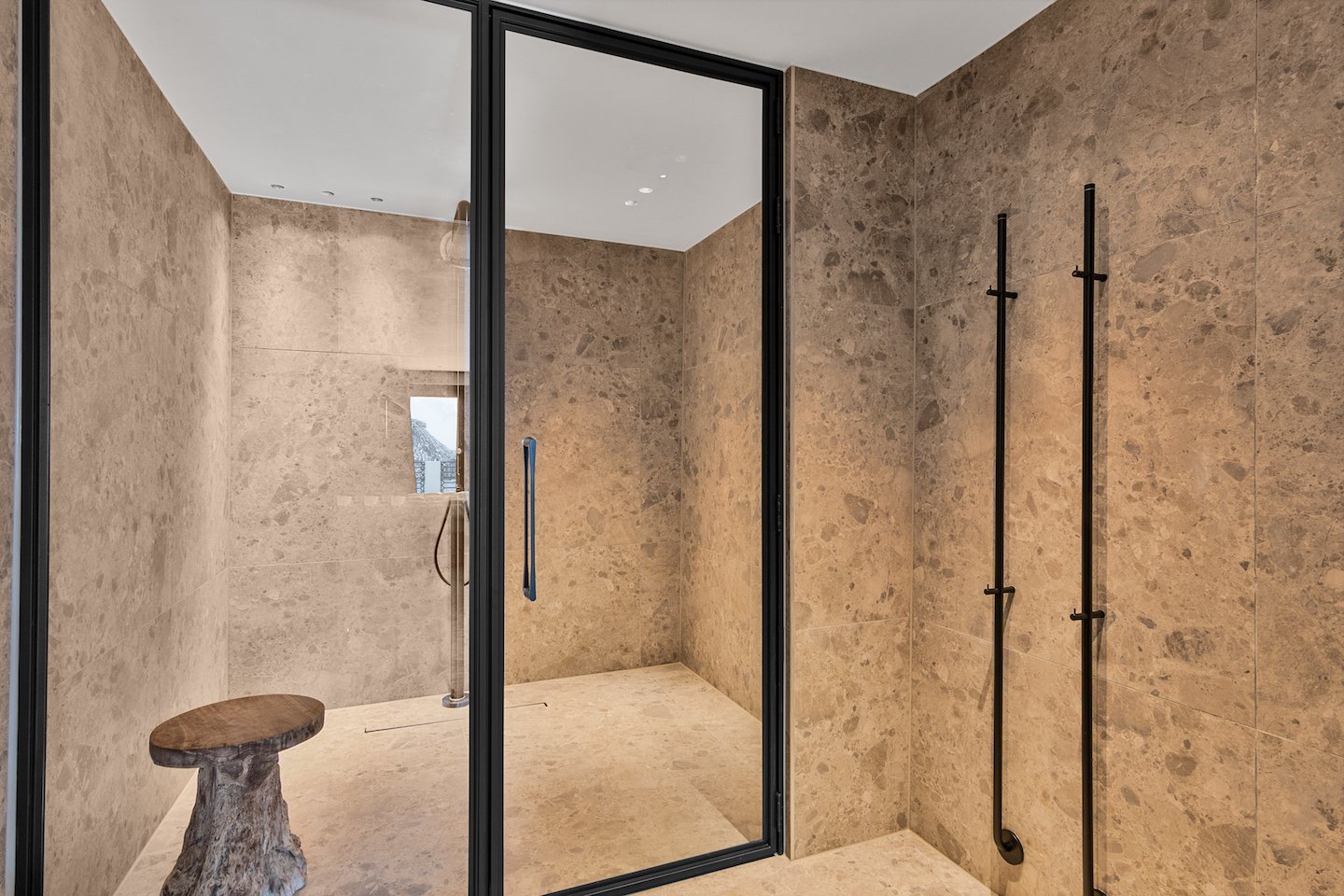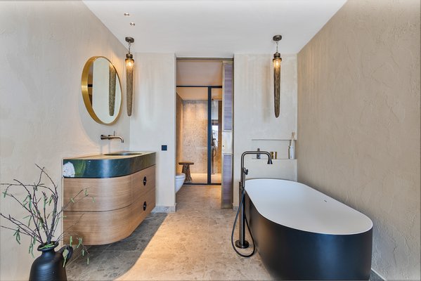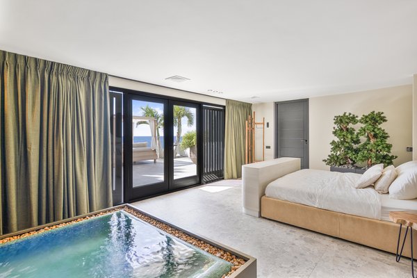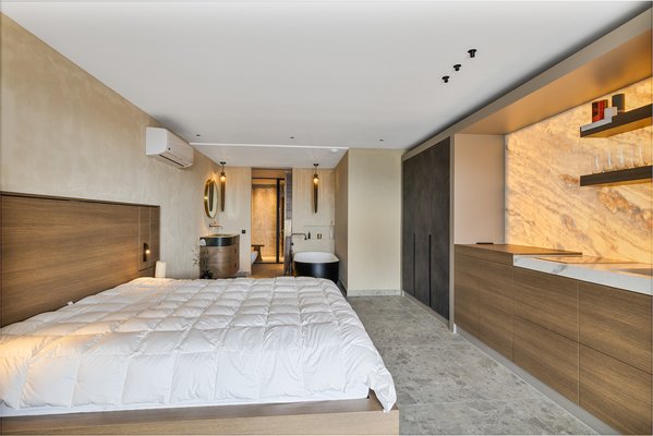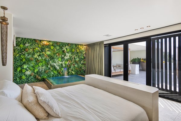 Die Hauptsuite ist ein privates Refugium seltener Genüsse mit einem Jacuzzi an einer herabfallenden tropischen Wasserwand – Ihr persönlicher Spa-Retreat. Belüftete Kleiderschränke im Couture-Stil, lederverkleidete Wände und die Details der weltweit besten Privathotels prägen den Raum.