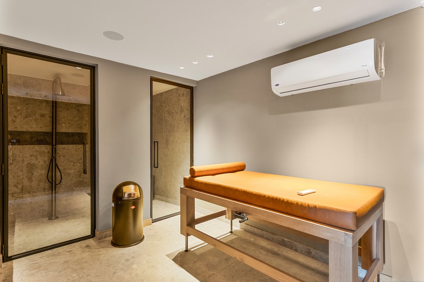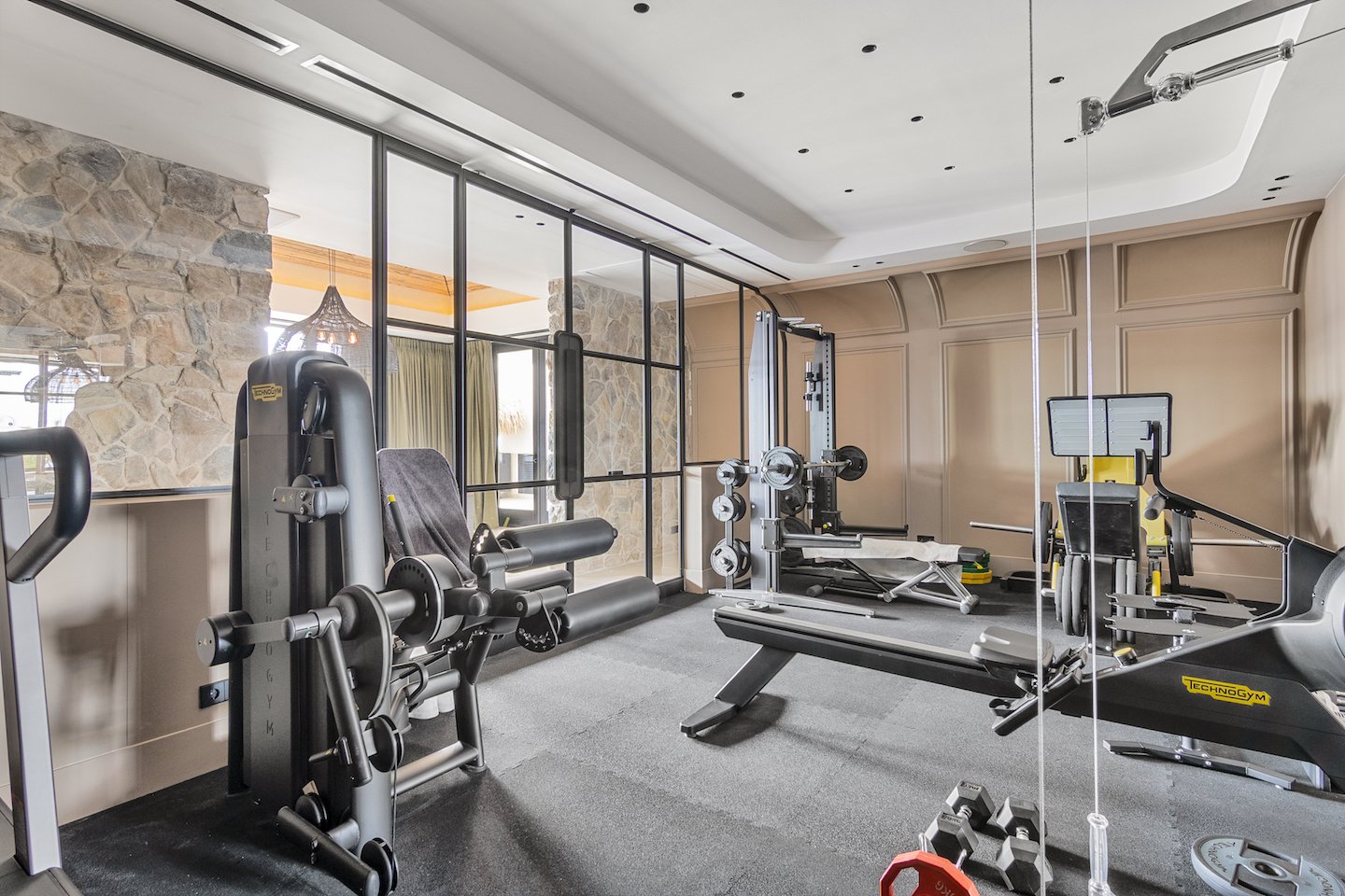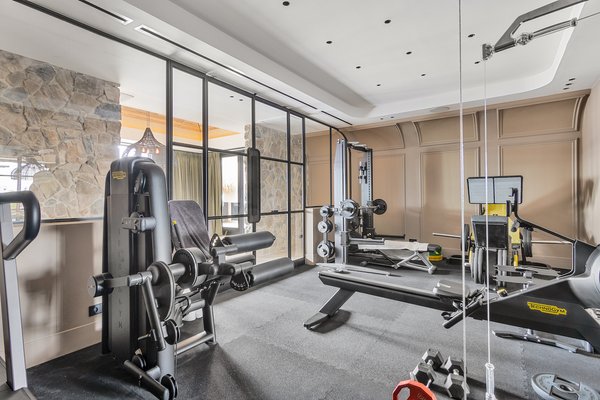 Wellness wird auf denselben außergewöhnlichen Standard gehoben. Ein voll ausgestattetes, hochmodernes Fitnessstudio wartet, während selbst die klimatisierte Garage die Atmosphäre von raffiniertem Luxus mit integriertem Sound bewahrt.