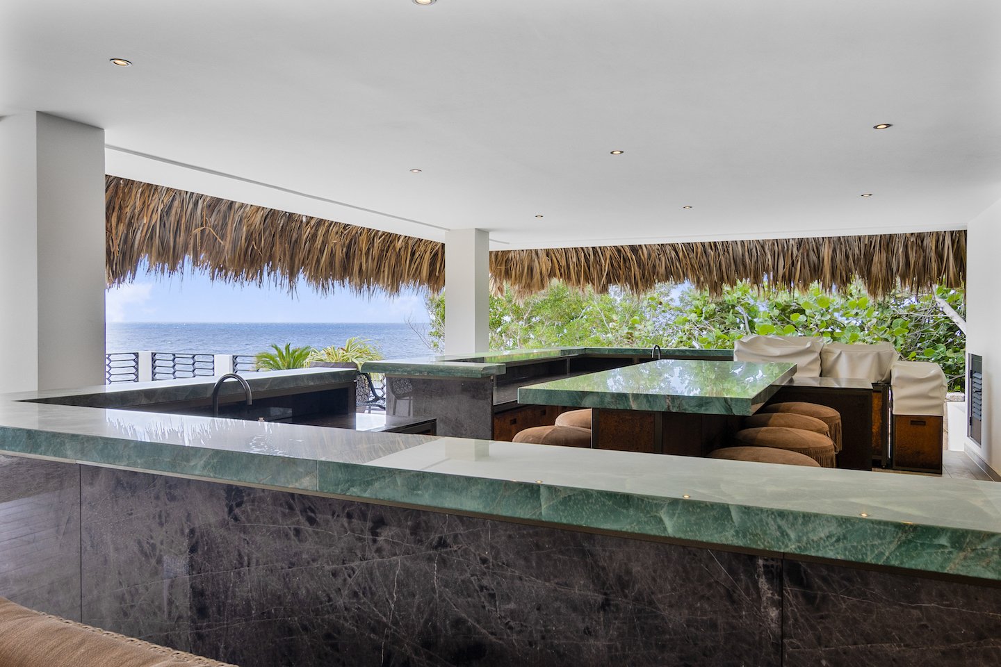 Im Freien öffnet sich das Anwesen auf einen privaten Strand mit direktem Zugang zur Karibik – perfekt zum Fang von frischem Fisch oder Hummer – neben einer romantischen Palpa am Meer, in der Sonnenuntergänge zu nächtlichen Ritualen werden. Üppige, professionell gestaltete, vollständig bewässerte Gärten umgeben das Anwesen mit tropischer Schönheit.
