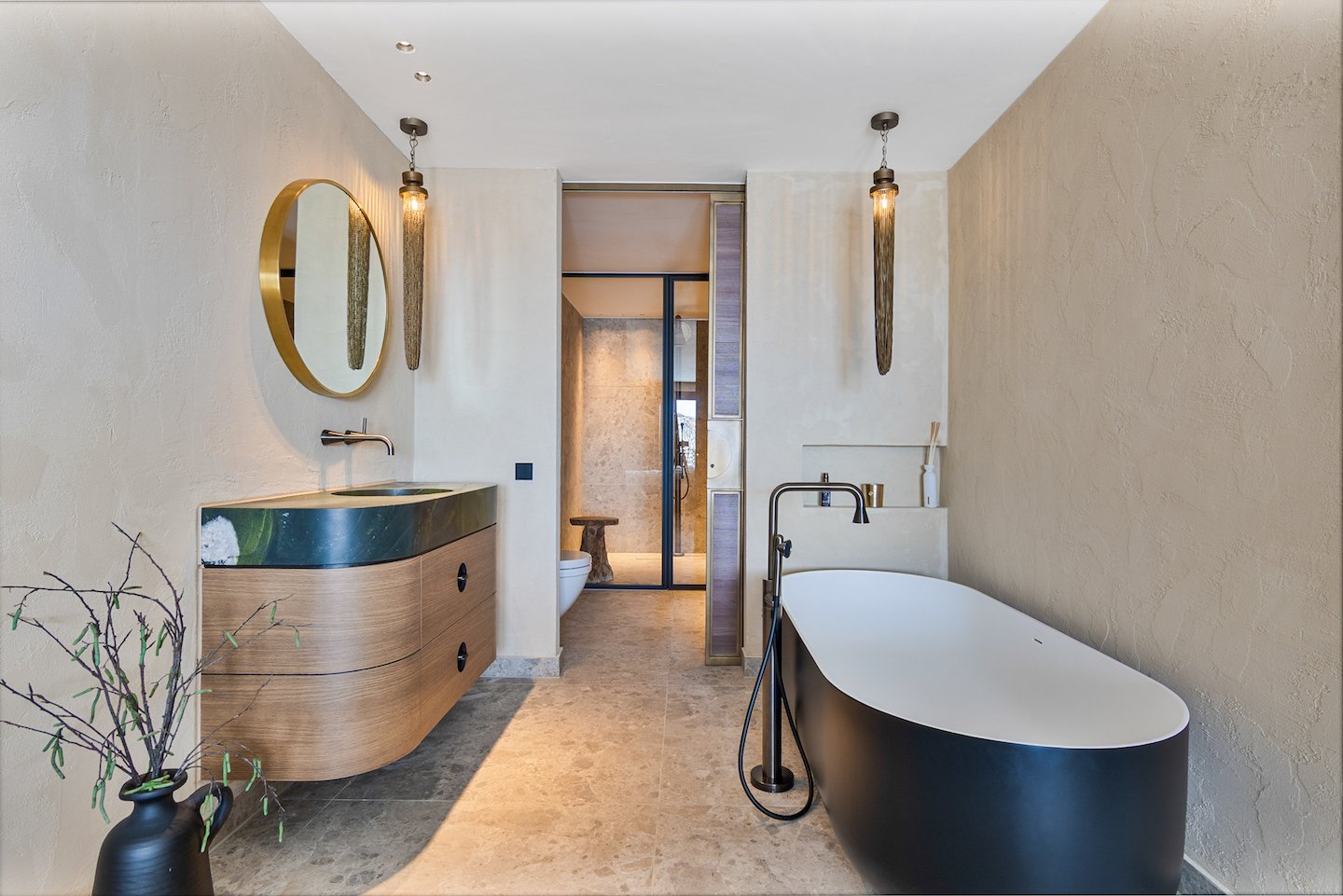 Von dem Moment an, in dem man ankommt, ist das Streben nach Perfektion unverkennbar. Es wurden nur die besten Materialien ausgewählt: exquisiter Marmor, maßgeschneiderte Oberflächen, die in den Niederlanden gefertigt wurden, und fortschrittliche maritime, diskret im Haus integrierte Marinetechnologien. Jede Linie, Oberfläche und jedes Detail spiegelt absolute Präzision wider.