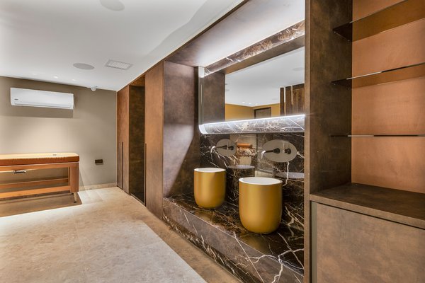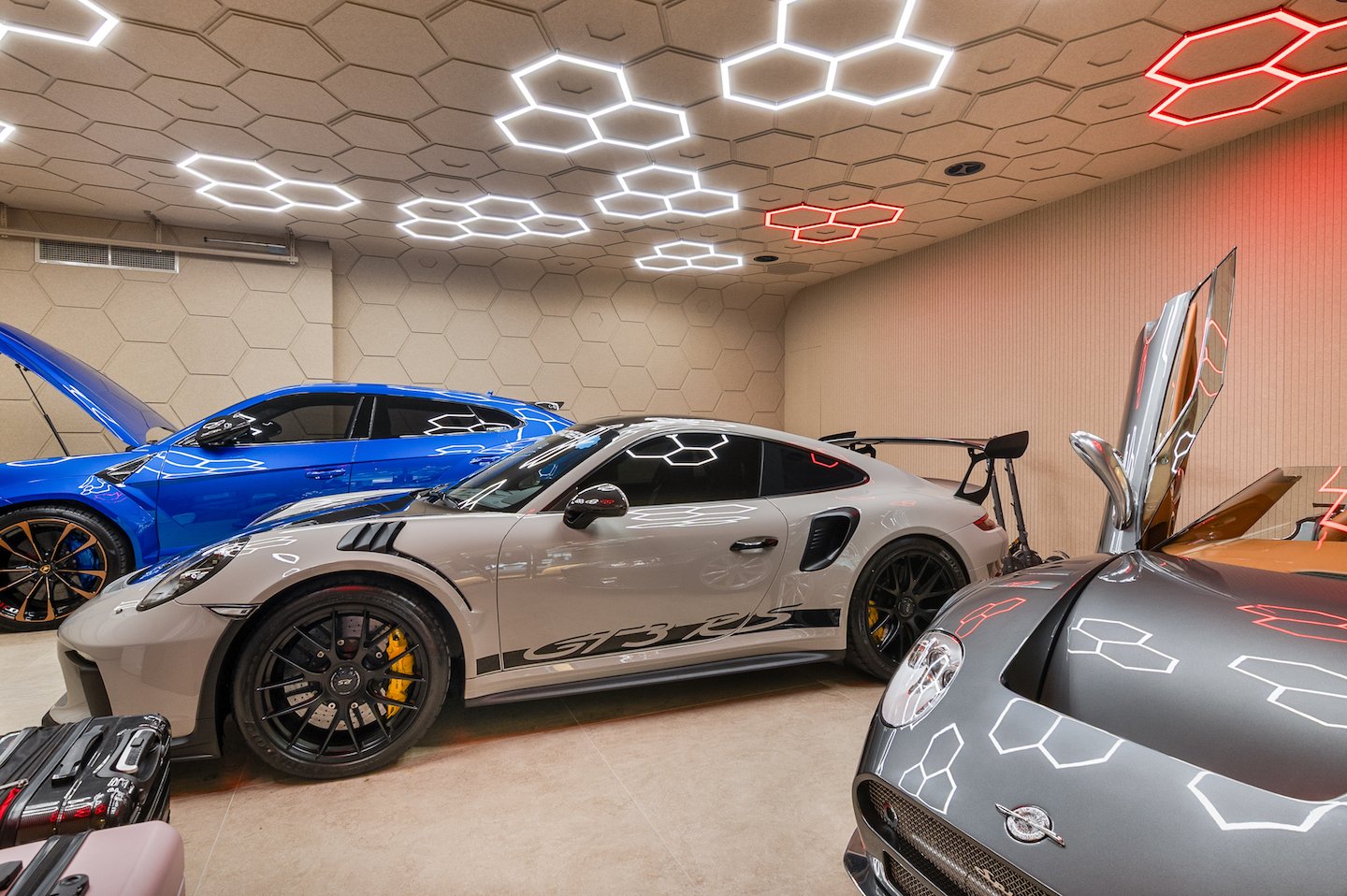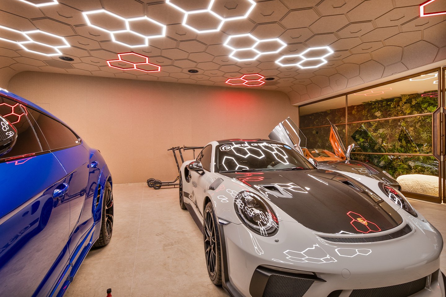 Wellness wird auf denselben außergewöhnlichen Standard gehoben. Ein voll ausgestattetes, hochmodernes Fitnessstudio wartet, während selbst die klimatisierte Garage die Atmosphäre von raffiniertem Luxus mit integriertem Sound bewahrt.