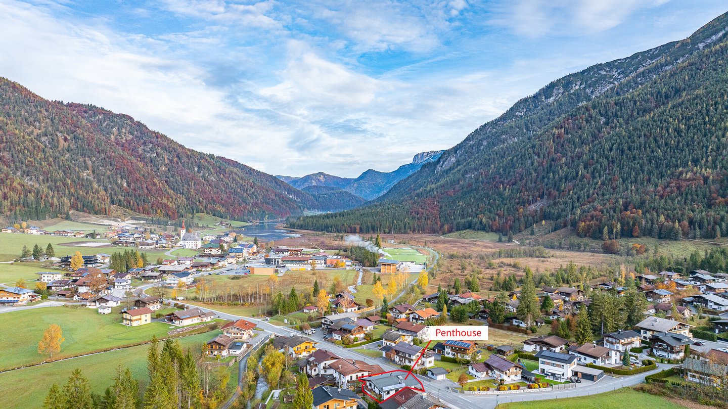 Zum Verkauf steht ein 112 m² großes Penthouse mit traumhaftem Ausblick auf die Loferer Steinberge.