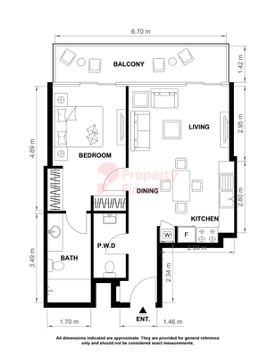 Der offene Wohn- und Essbereich ist hochwertig gestaltet und bietet direkten Zugang zu bodentiefen Fenstern, die viel Tageslicht hereinlassen. Die moderne Küche ist voll ausgestattet und fügt sich nahtlos in das elegante Wohnkonzept ein. Das Schlafzimmer bietet ausreichend Stauraum und Komfort, während das Badezimmer mit hochwertigen Materialien und zeitlosem Design überzeugt.