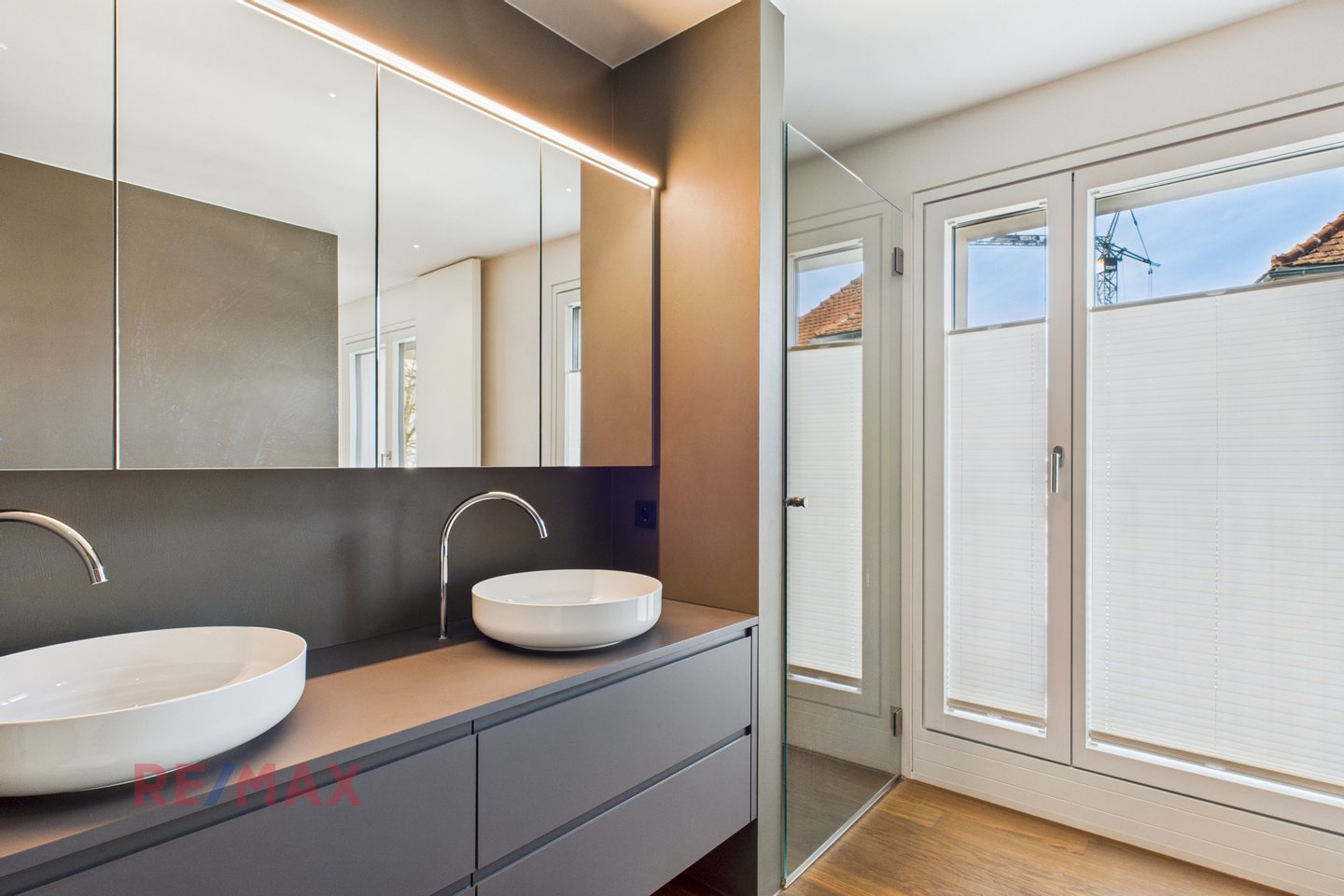 Die moderne, stilvolle Einrichtung überzeugt bis ins Detail – hier wurde Wert auf Qualität, Design und Wohnkomfort gelegt. Zwei Terrassen mit rund 26 m² und 9 m² bieten sonnige Rückzugsorte und laden zu entspannten Stunden im Freien ein.