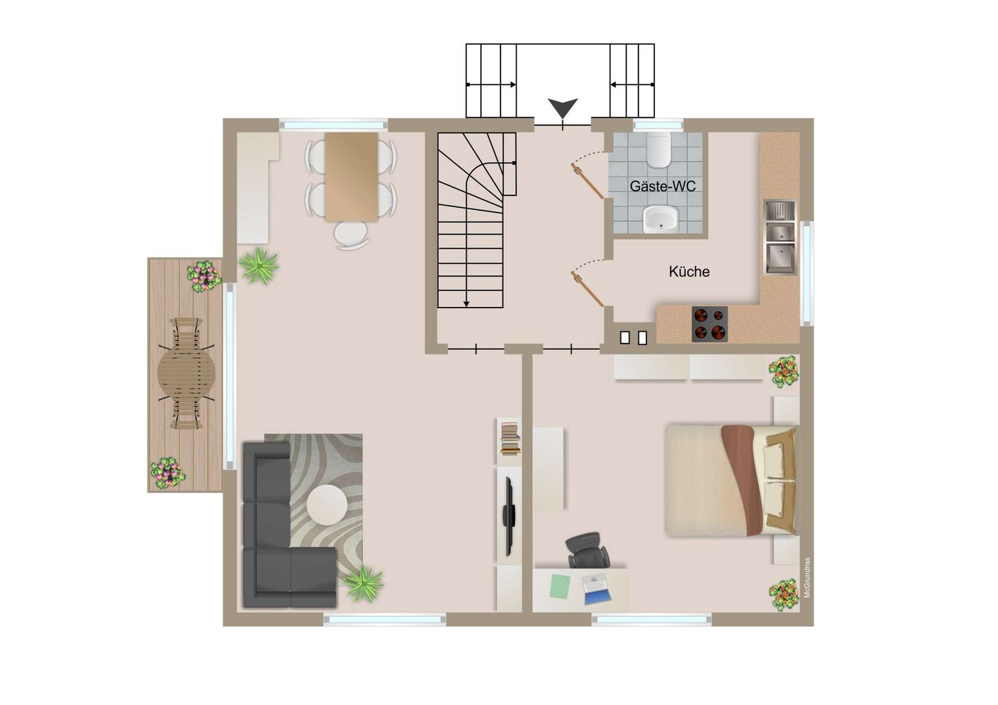 Mit einer Wohnfläche von rund 100 m², verteilt auf 1,5 Etagen, bietet das Haus insgesamt 4,5 Zimmer und somit ausreichend Platz für eine Familie.
