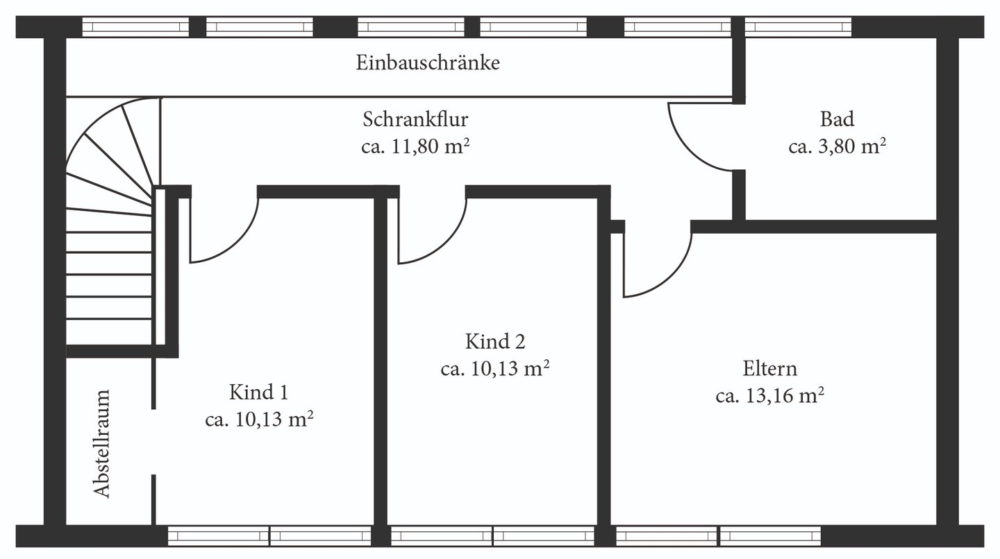 Über eine offene Holztreppe gelangen Sie ins Obergeschoss. Hier befinden sich drei gut geschnittene Schlafzimmer, ein Flur mit praktischen Einbauschränken sowie ein Tageslichtvollbad. Der von außen zugängliche Technikraum beherbergt alle Hausanschlüsse sowie den Warmwasserspeicher. Die Beheizung der Immobilie erfolgt über Fernwärme. Das sonnige Grundstück wurde liebevoll angelegt. Auf der ca. 24 m² großen Südterrasse mit Holzboden können Sie sonnige Stunden, entspannte Momente sowie gesellige Grillabende genießen. Ein großzügiges Gartenhaus sorgt für zusätzlichen Stauraum.