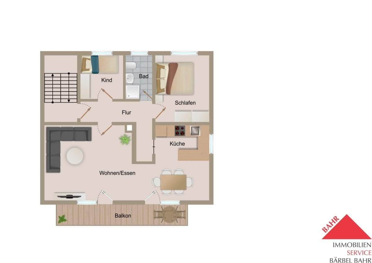 Im OG und EG befinden sich jeweils Küche, Wohn- und Esszimmer, je zwei Schlafzimmer und Tageslichtbad, Balkon oder Terrasse mit Gartenzugang.
