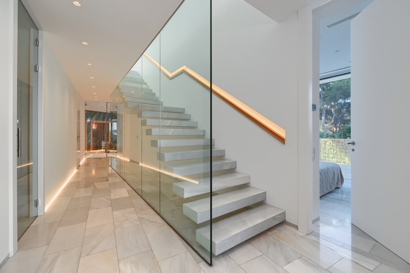 Dieses architektonische Meisterwerk bietet zudem zahlreiche Schlafzimmer, ideal für Eigentümer, Gäste oder Personal, eine Doppelgarage, eine Sauna, einen beheizten Innenpool, einen Fitnessraum, einen Weinkeller und Solarenergie. Wie ein wahrgewordener Traum übertrifft der Luxus und Komfort dieses wunderschönen Hauses selbst die exklusivsten Luxusresorts der Welt und lädt zu einem glamourösen und exklusiven Lebensstil ein, bei dem das Meer Tag und Nacht ein entspannender Begleiter ist.