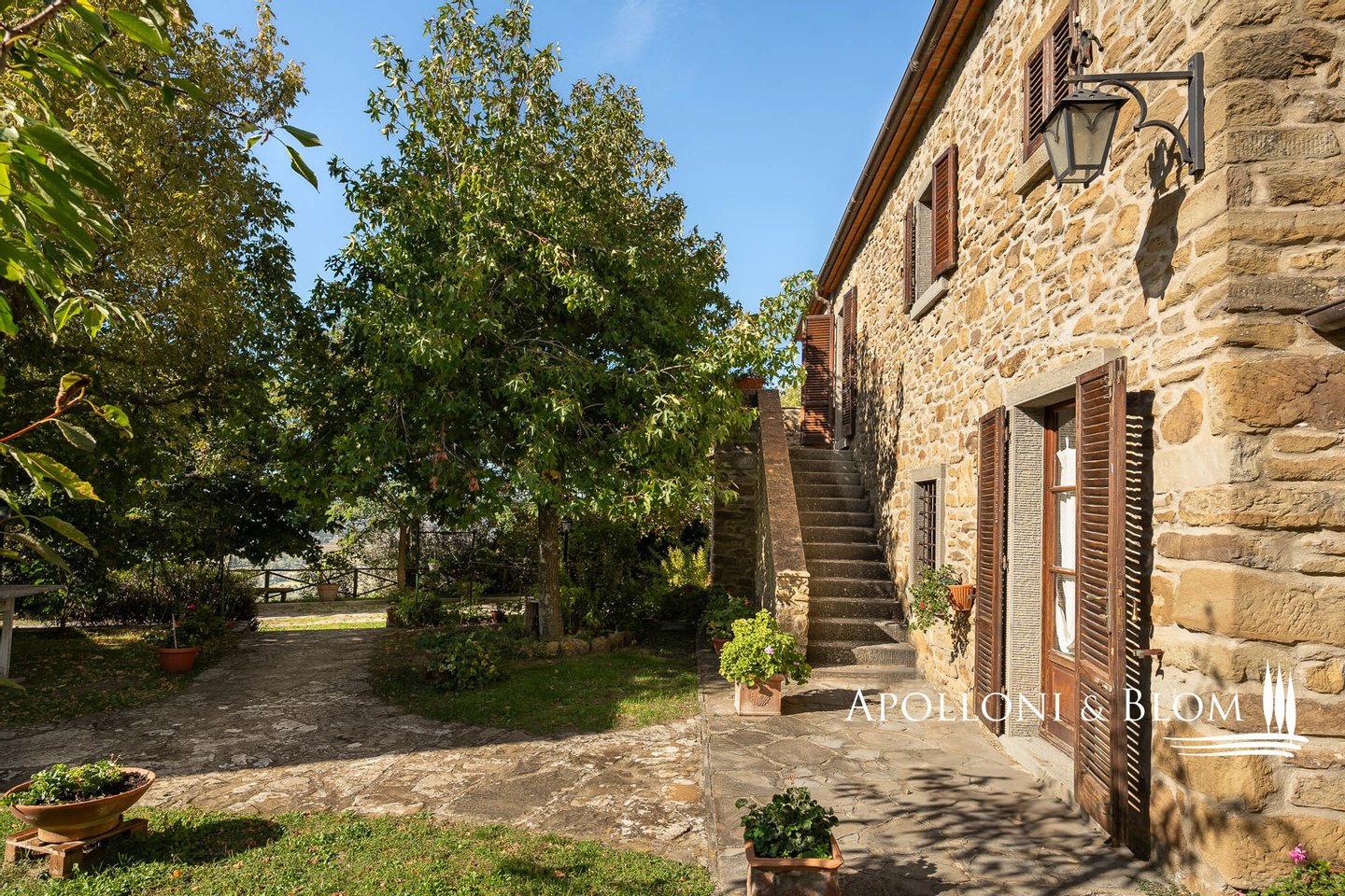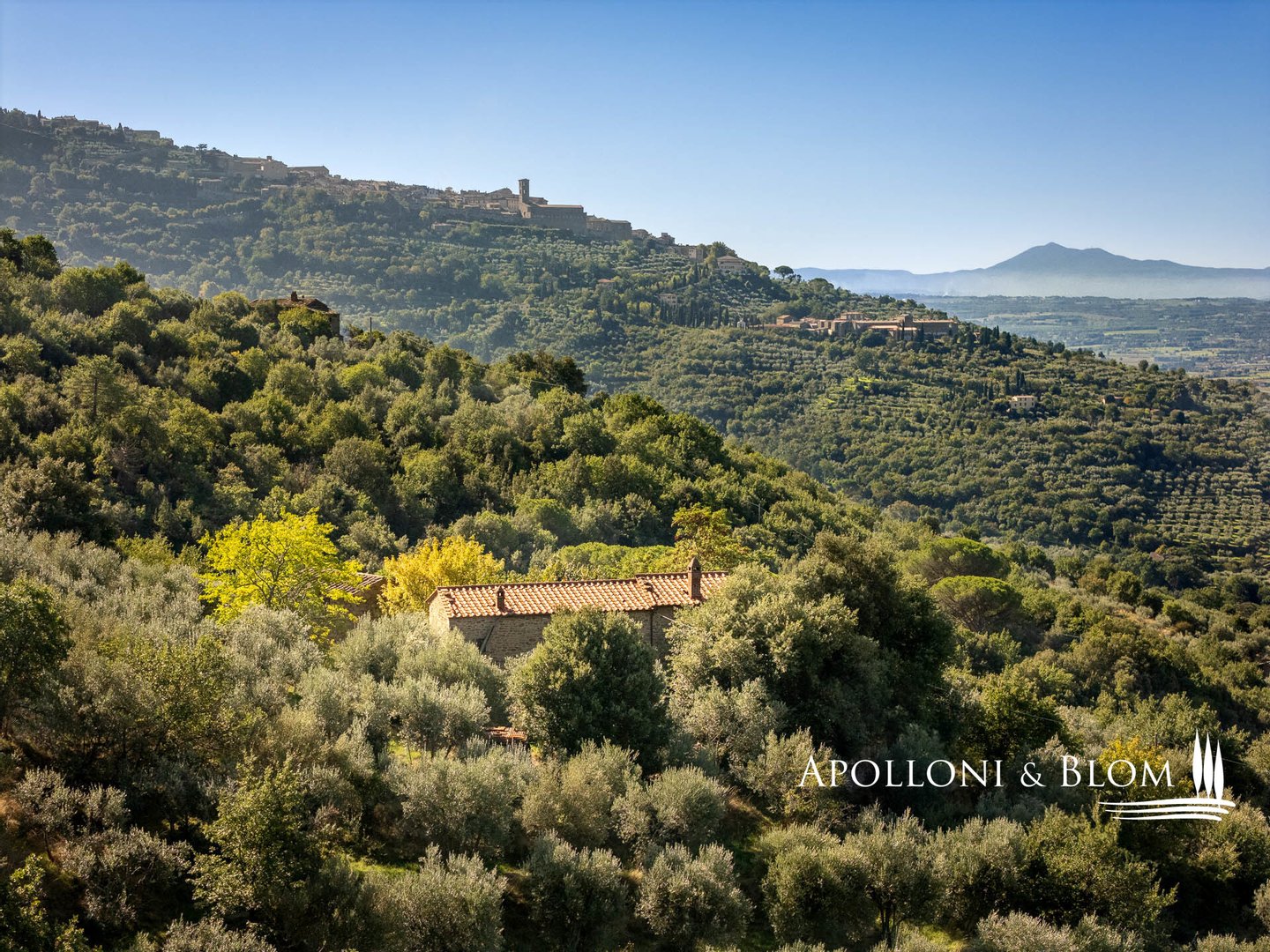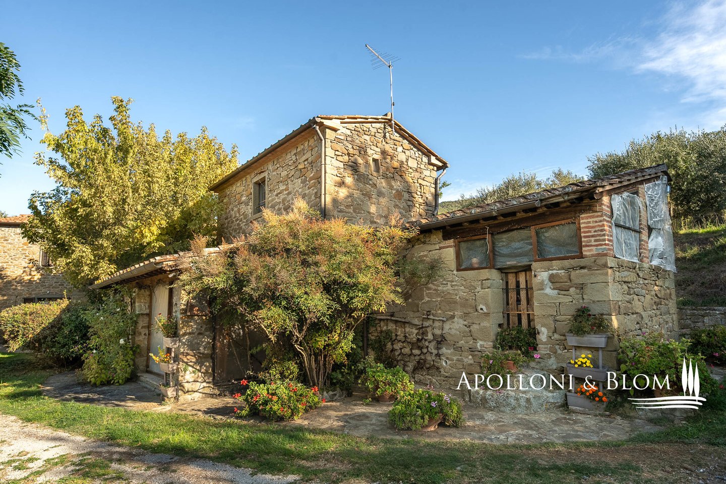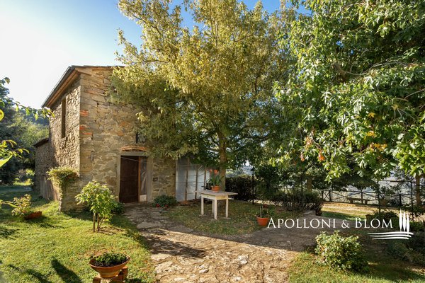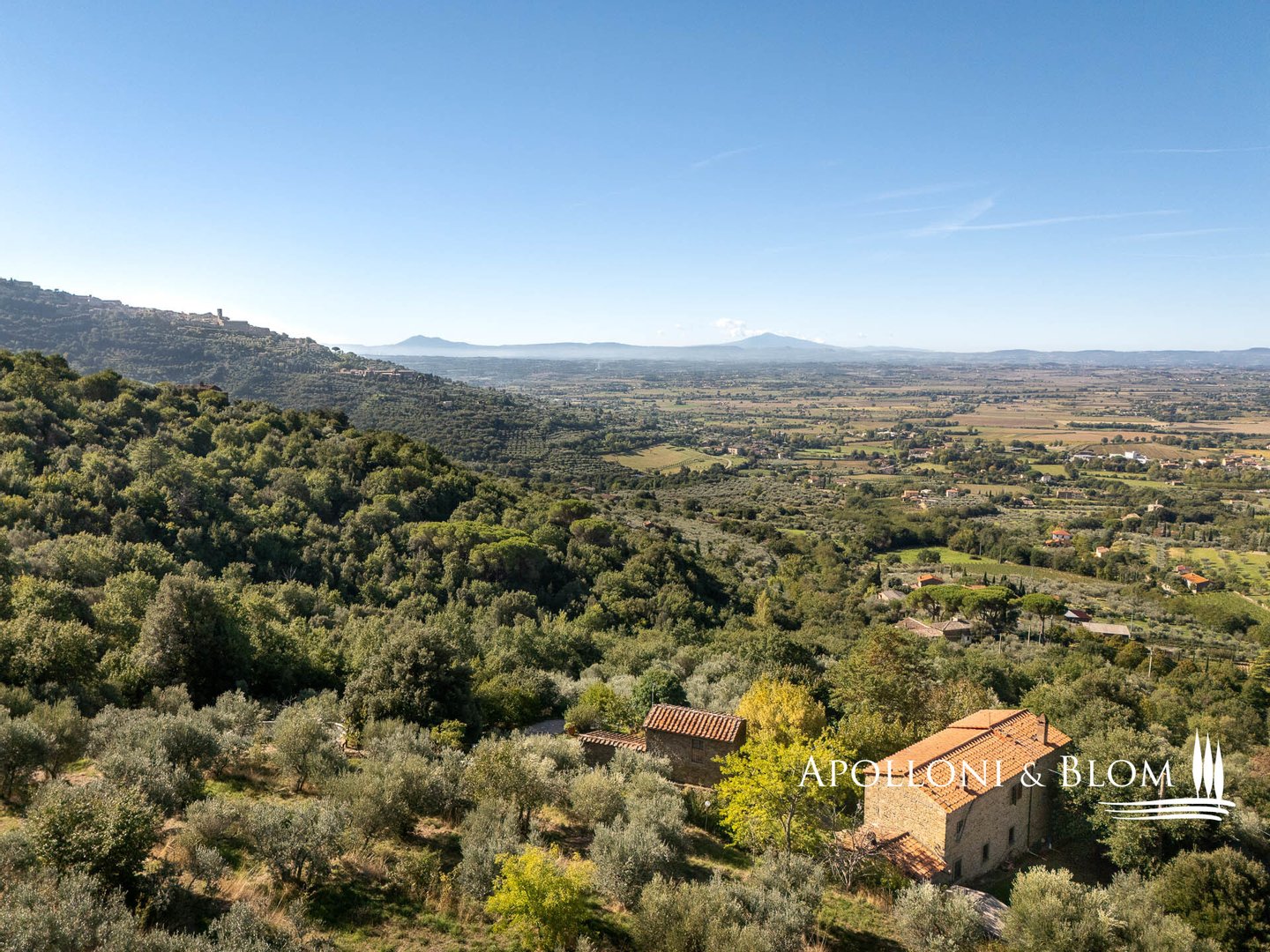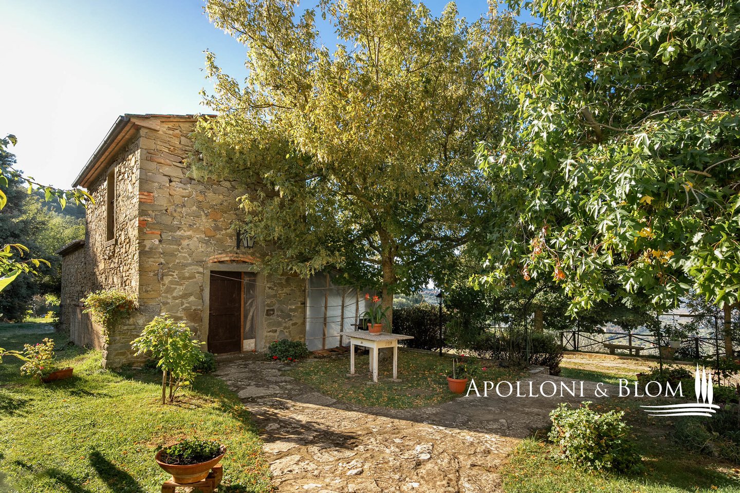 Charakteristisches restauriertes Bauernhaus aus Stein aus dem Jahr 1800 mit Schwimmbad, Dependance, Garten und Olivenhain mit Panoramablick über Cortona zu verkaufen. Auf dem Lande, am Rande der Stadt Cortona und in der Nähe des Trasimeno-Sees, führt eine kurze weiße Straße zu einer bezaubernden Lage auf einem Hügel mit Wäldern, unberührter Natur und freiem Blick über das Val di Chiana und die Stadt Cortona. Dieses komplett renovierte Bauernhaus aus dem 19. Jahrhundert hat seinen typisch toskanischen Stil mit Steinfassaden und Innenräumen mit freiliegenden Holzbalkendecken und Terrakottaböden in allen Zimmern beibehalten. Es erstreckt sich über zwei Etagen mit ca. 165 Quadratmetern und bietet im Erdgeschoss ein großes Doppelwohnzimmer mit Kamin und offener Küche. Eine Holztreppe führt zu den beiden Schlafzimmern im Obergeschoss. Die Badezimmer sind mit Keramikfliesen und einer Badewanne ausgestattet. Das ehemalige Hüttengebäude wurde in einen Gästeraum mit einem Wohn- und einem Schlafzimmer umgewandelt und bietet die Möglichkeit einer Erweiterung durch Nutzung der Außenüberdachung als Zitronenhaus mit der Möglichkeit, ein zweites Schlafzimmer mit Bad zu schaffen. Das Bauernhaus ist von ca. 2 Hektar privatem Land umgeben und verfügt über einen Garten, einen oberirdischen ovalen Swimmingpool mit schönem Panoramablick und einen Olivenhain mit 488 Bäumen. Ein artesischer Brunnen liefert Wasser für den Haushalt und die Bewässerung. Reservierte Lage, nur wenige Minuten von Geschäften und Dienstleistungen entfernt, sofort bewohnbar, ideal als privater Wohnsitz, ganzjährig bewohnbar oder für den Urlaub, aber auch für die kurzfristige Vermietung und für die Beherbergung von Touristen für ihre Aufenthalte in der Toskana.