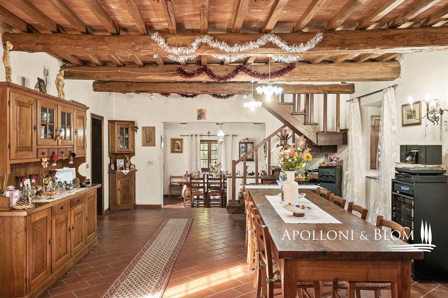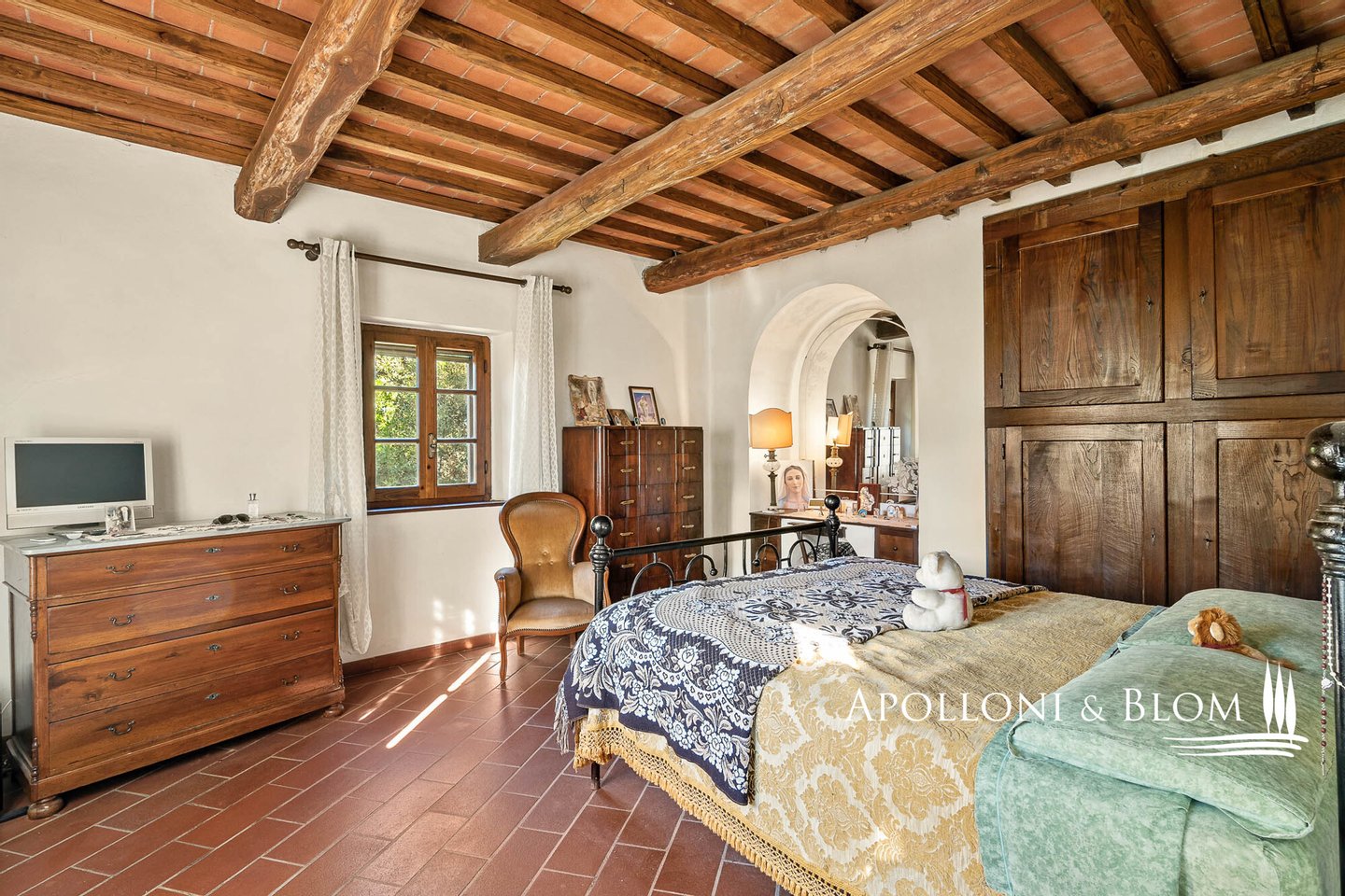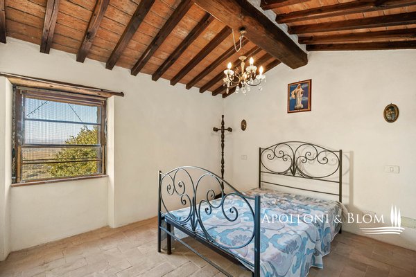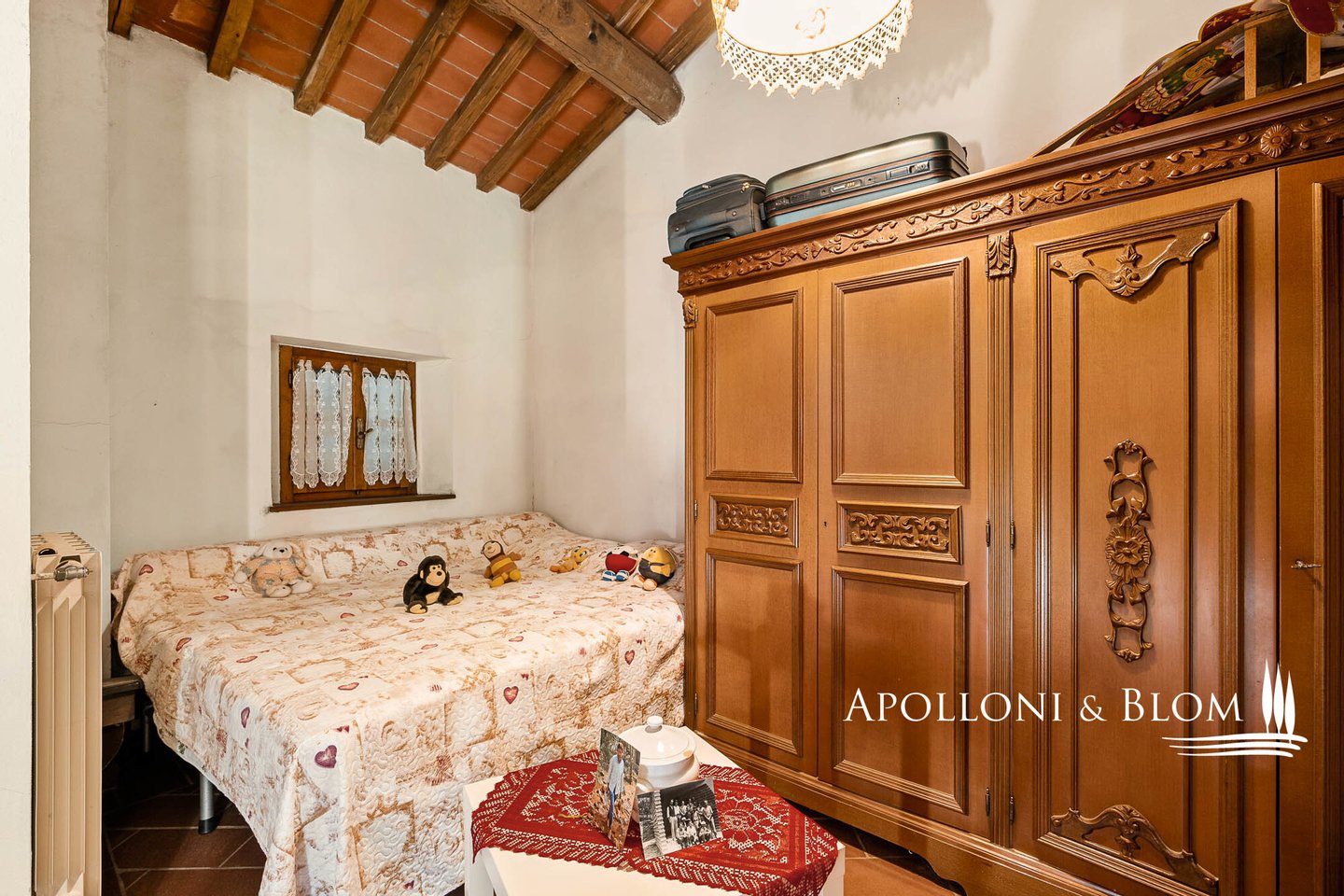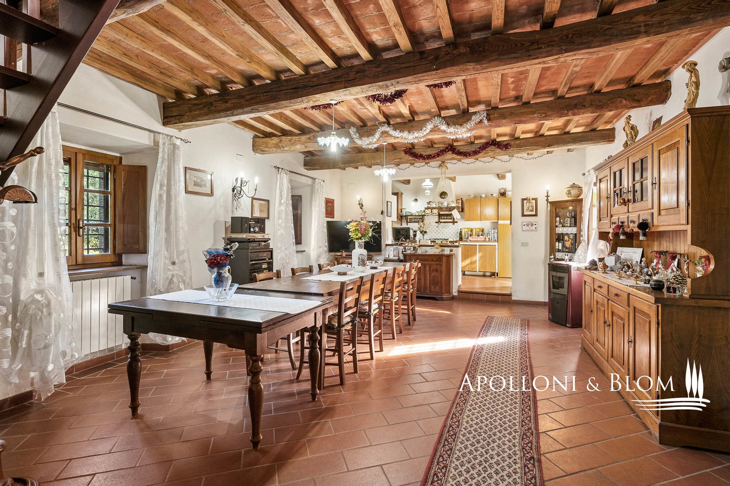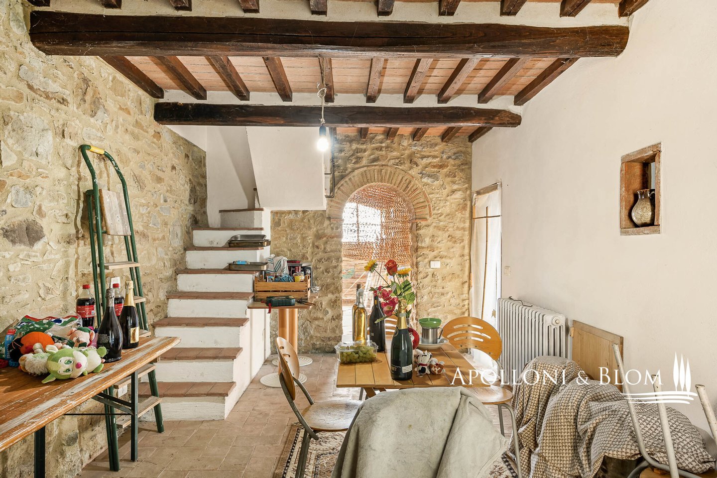Charakteristisches restauriertes Bauernhaus aus Stein aus dem Jahr 1800 mit Schwimmbad, Dependance, Garten und Olivenhain mit Panoramablick über Cortona zu verkaufen. Auf dem Lande, am Rande der Stadt Cortona und in der Nähe des Trasimeno-Sees, führt eine kurze weiße Straße zu einer bezaubernden Lage auf einem Hügel mit Wäldern, unberührter Natur und freiem Blick über das Val di Chiana und die Stadt Cortona. Dieses komplett renovierte Bauernhaus aus dem 19. Jahrhundert hat seinen typisch toskanischen Stil mit Steinfassaden und Innenräumen mit freiliegenden Holzbalkendecken und Terrakottaböden in allen Zimmern beibehalten. Es erstreckt sich über zwei Etagen mit ca. 165 Quadratmetern und bietet im Erdgeschoss ein großes Doppelwohnzimmer mit Kamin und offener Küche. Eine Holztreppe führt zu den beiden Schlafzimmern im Obergeschoss. Die Badezimmer sind mit Keramikfliesen und einer Badewanne ausgestattet. Das ehemalige Hüttengebäude wurde in einen Gästeraum mit einem Wohn- und einem Schlafzimmer umgewandelt und bietet die Möglichkeit einer Erweiterung durch Nutzung der Außenüberdachung als Zitronenhaus mit der Möglichkeit, ein zweites Schlafzimmer mit Bad zu schaffen. Das Bauernhaus ist von ca. 2 Hektar privatem Land umgeben und verfügt über einen Garten, einen oberirdischen ovalen Swimmingpool mit schönem Panoramablick und einen Olivenhain mit 488 Bäumen. Ein artesischer Brunnen liefert Wasser für den Haushalt und die Bewässerung. Reservierte Lage, nur wenige Minuten von Geschäften und Dienstleistungen entfernt, sofort bewohnbar, ideal als privater Wohnsitz, ganzjährig bewohnbar oder für den Urlaub, aber auch für die kurzfristige Vermietung und für die Beherbergung von Touristen für ihre Aufenthalte in der Toskana.