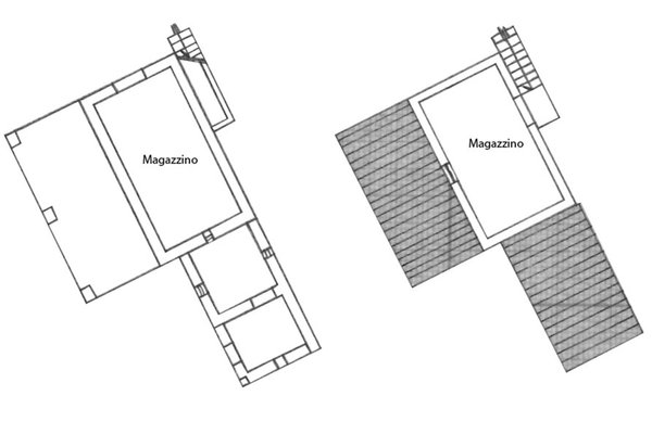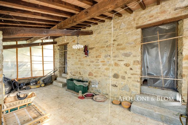 Nebengebäude: Gebäude von ca. 55 qm auf zwei Ebenen mit Limonaia/Pergola, teilweise renoviert mit Wohnbereich mit Küche im Erdgeschoss und 1 Schlafzimmer mit Bad im ersten Stock; Möglichkeit, den Limonaia-Raum in ein zweites Schlafzimmer mit Bad umzubauen