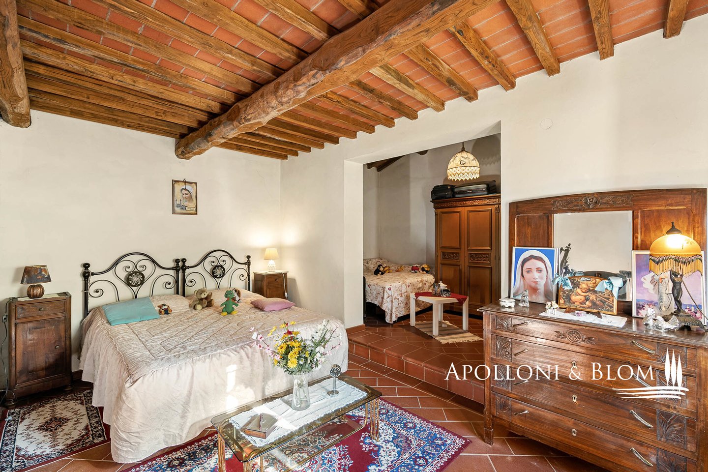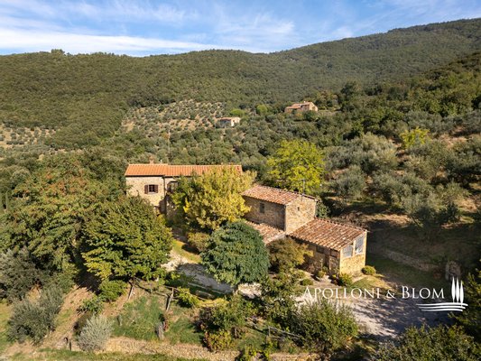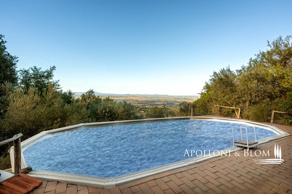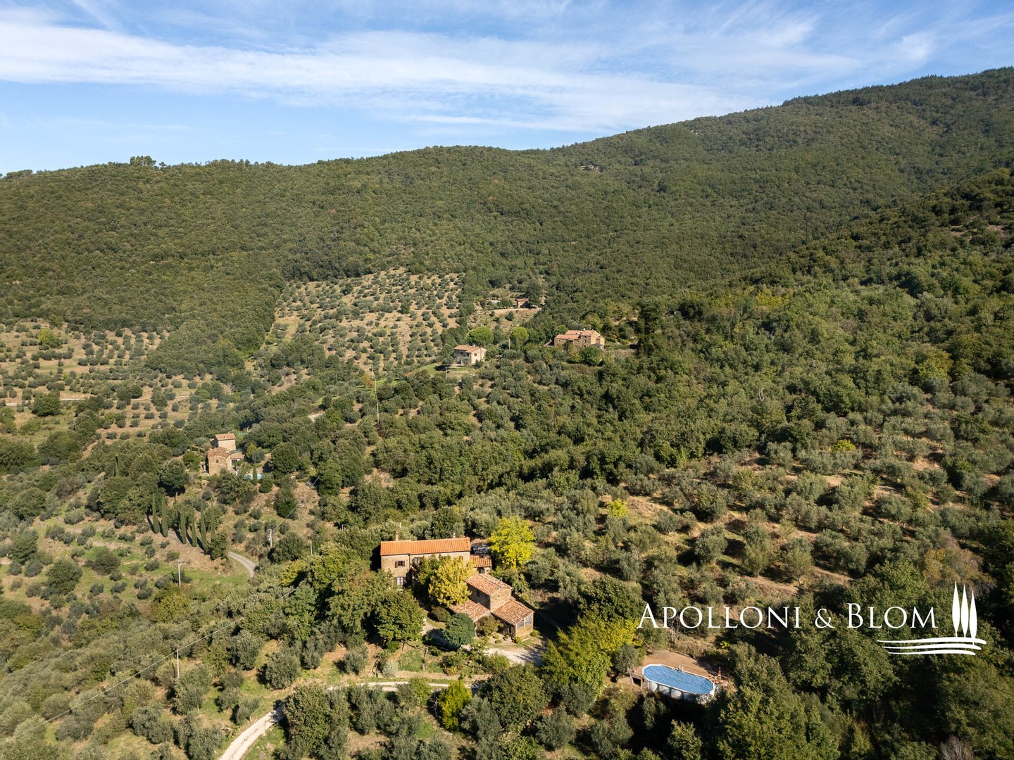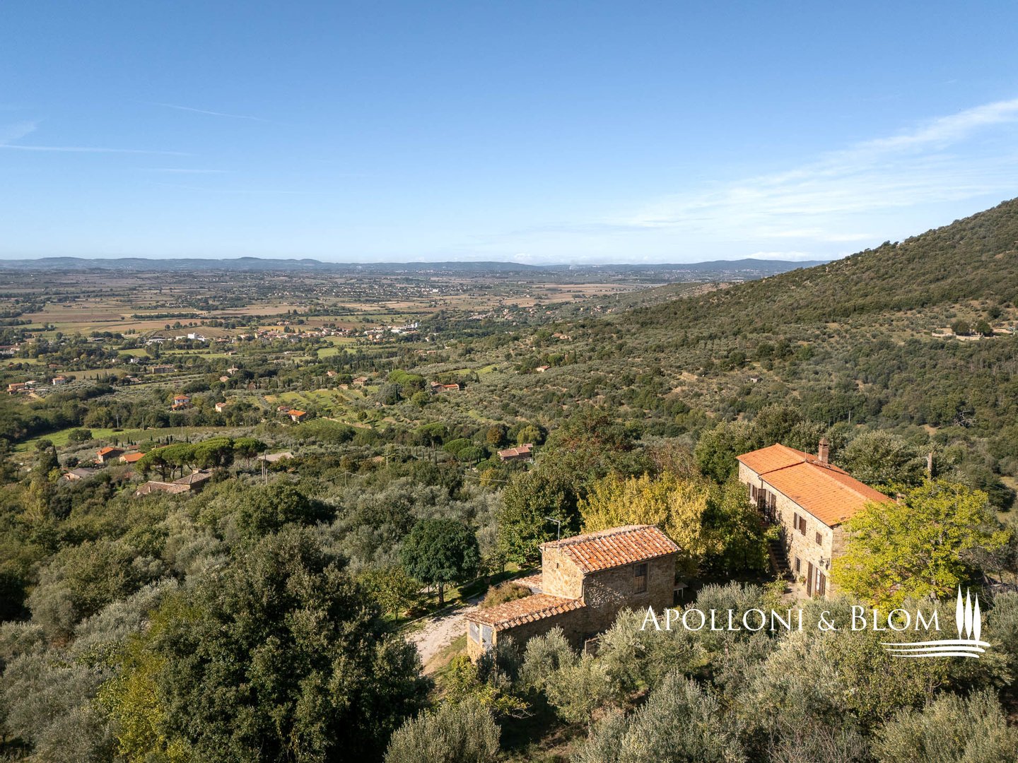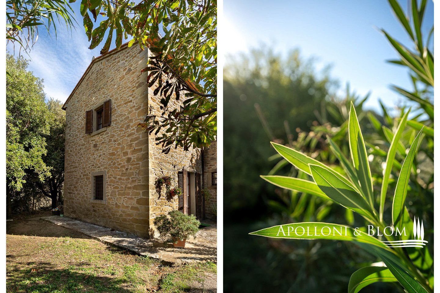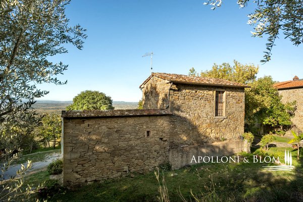 Charakteristisches restauriertes Bauernhaus aus Stein aus dem Jahr 1800 mit Schwimmbad, Dependance, Garten und Olivenhain mit Panoramablick über Cortona zu verkaufen. Auf dem Lande, am Rande der Stadt Cortona und in der Nähe des Trasimeno-Sees, führt eine kurze weiße Straße zu einer bezaubernden Lage auf einem Hügel mit Wäldern, unberührter Natur und freiem Blick über das Val di Chiana und die Stadt Cortona. Dieses komplett renovierte Bauernhaus aus dem 19. Jahrhundert hat seinen typisch toskanischen Stil mit Steinfassaden und Innenräumen mit freiliegenden Holzbalkendecken und Terrakottaböden in allen Zimmern beibehalten. Es erstreckt sich über zwei Etagen mit ca. 165 Quadratmetern und bietet im Erdgeschoss ein großes Doppelwohnzimmer mit Kamin und offener Küche. Eine Holztreppe führt zu den beiden Schlafzimmern im Obergeschoss. Die Badezimmer sind mit Keramikfliesen und einer Badewanne ausgestattet. Das ehemalige Hüttengebäude wurde in einen Gästeraum mit einem Wohn- und einem Schlafzimmer umgewandelt und bietet die Möglichkeit einer Erweiterung durch Nutzung der Außenüberdachung als Zitronenhaus mit der Möglichkeit, ein zweites Schlafzimmer mit Bad zu schaffen. Das Bauernhaus ist von ca. 2 Hektar privatem Land umgeben und verfügt über einen Garten, einen oberirdischen ovalen Swimmingpool mit schönem Panoramablick und einen Olivenhain mit 488 Bäumen. Ein artesischer Brunnen liefert Wasser für den Haushalt und die Bewässerung. Reservierte Lage, nur wenige Minuten von Geschäften und Dienstleistungen entfernt, sofort bewohnbar, ideal als privater Wohnsitz, ganzjährig bewohnbar oder für den Urlaub, aber auch für die kurzfristige Vermietung und für die Beherbergung von Touristen für ihre Aufenthalte in der Toskana.