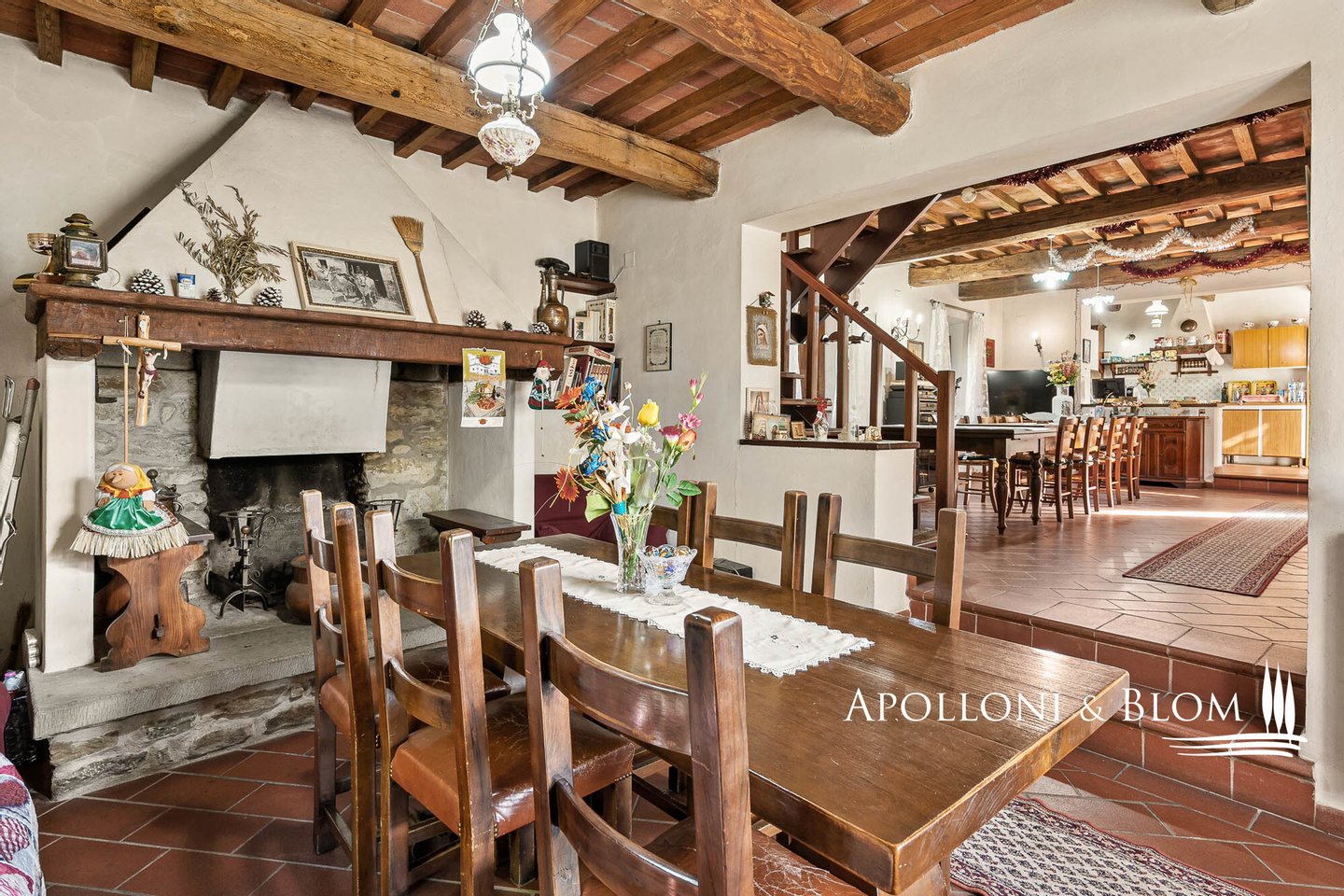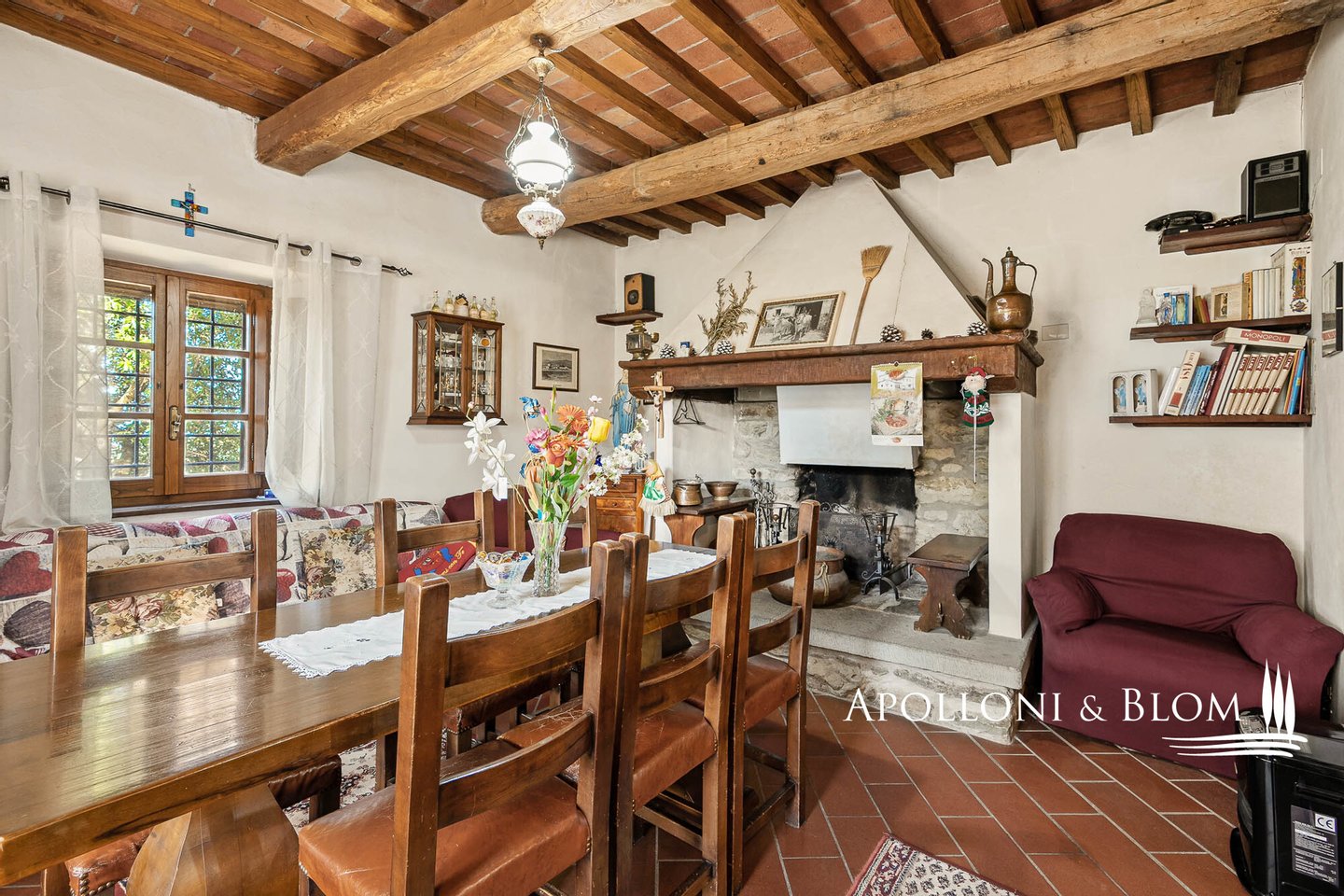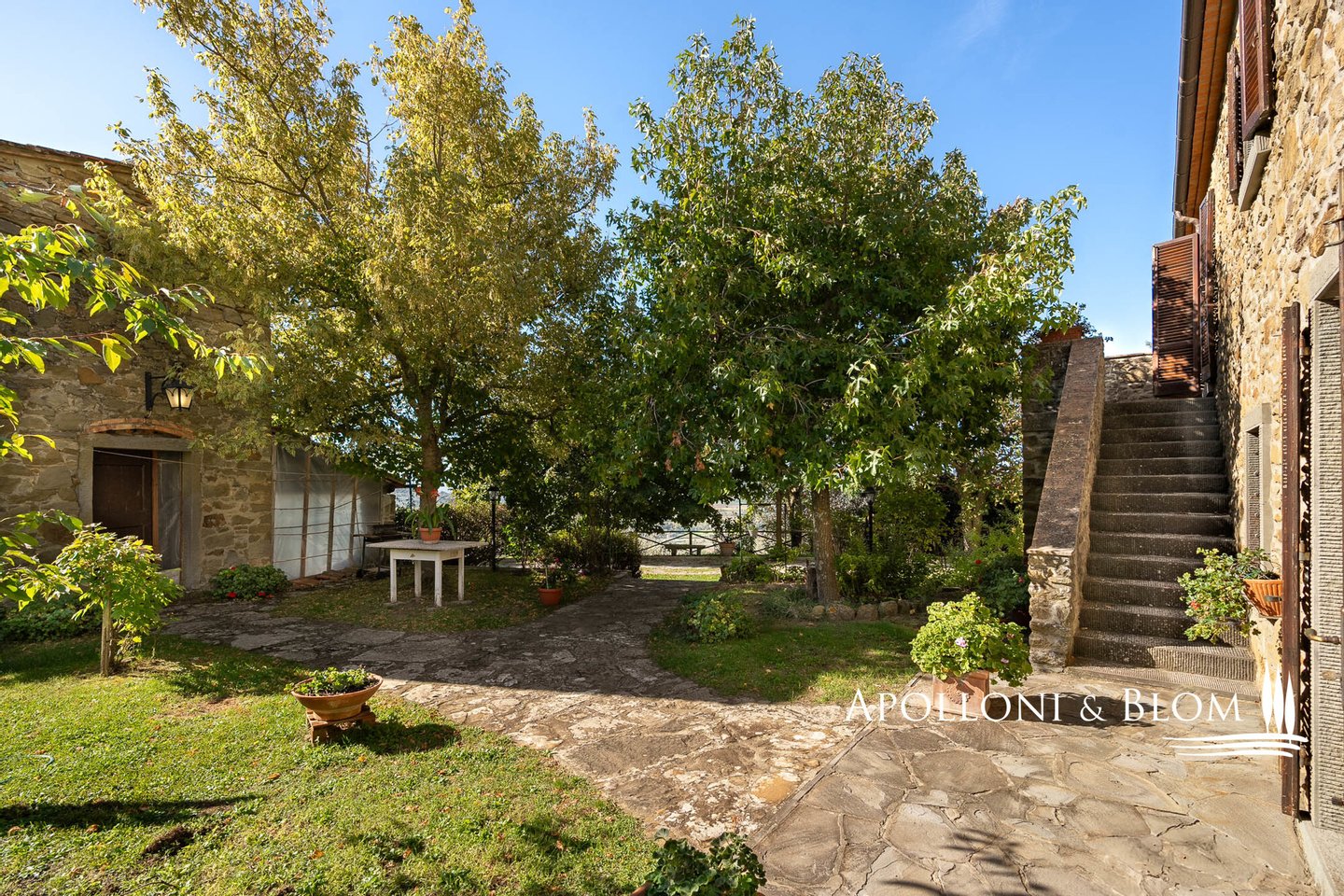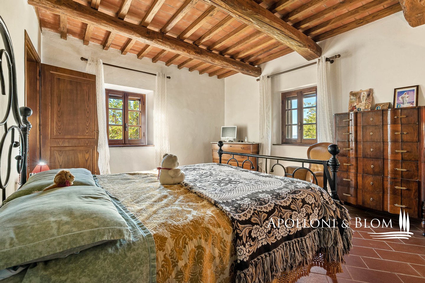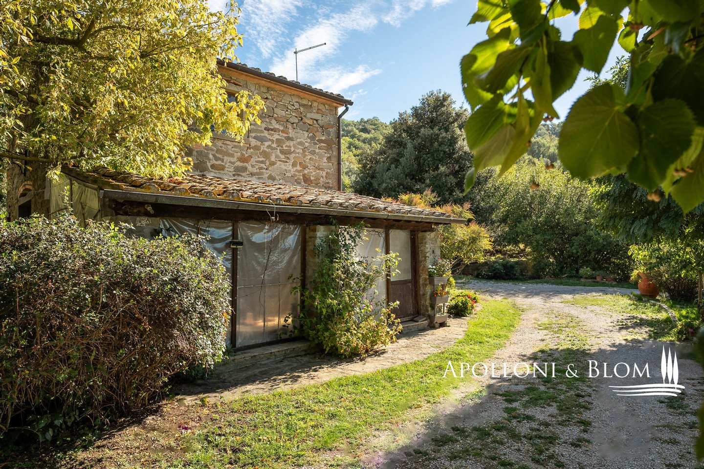 Charakteristisches restauriertes Bauernhaus aus Stein aus dem Jahr 1800 mit Schwimmbad, Dependance, Garten und Olivenhain mit Panoramablick über Cortona zu verkaufen. Auf dem Lande, am Rande der Stadt Cortona und in der Nähe des Trasimeno-Sees, führt eine kurze weiße Straße zu einer bezaubernden Lage auf einem Hügel mit Wäldern, unberührter Natur und freiem Blick über das Val di Chiana und die Stadt Cortona. Dieses komplett renovierte Bauernhaus aus dem 19. Jahrhundert hat seinen typisch toskanischen Stil mit Steinfassaden und Innenräumen mit freiliegenden Holzbalkendecken und Terrakottaböden in allen Zimmern beibehalten. Es erstreckt sich über zwei Etagen mit ca. 165 Quadratmetern und bietet im Erdgeschoss ein großes Doppelwohnzimmer mit Kamin und offener Küche. Eine Holztreppe führt zu den beiden Schlafzimmern im Obergeschoss. Die Badezimmer sind mit Keramikfliesen und einer Badewanne ausgestattet. Das ehemalige Hüttengebäude wurde in einen Gästeraum mit einem Wohn- und einem Schlafzimmer umgewandelt und bietet die Möglichkeit einer Erweiterung durch Nutzung der Außenüberdachung als Zitronenhaus mit der Möglichkeit, ein zweites Schlafzimmer mit Bad zu schaffen. Das Bauernhaus ist von ca. 2 Hektar privatem Land umgeben und verfügt über einen Garten, einen oberirdischen ovalen Swimmingpool mit schönem Panoramablick und einen Olivenhain mit 488 Bäumen. Ein artesischer Brunnen liefert Wasser für den Haushalt und die Bewässerung. Reservierte Lage, nur wenige Minuten von Geschäften und Dienstleistungen entfernt, sofort bewohnbar, ideal als privater Wohnsitz, ganzjährig bewohnbar oder für den Urlaub, aber auch für die kurzfristige Vermietung und für die Beherbergung von Touristen für ihre Aufenthalte in der Toskana.