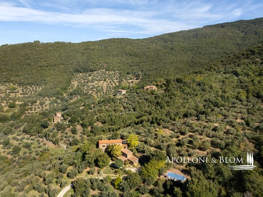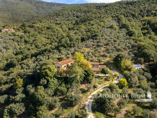 Typ: Bauernhaus aus Stein von ca. 165 m² auf zwei Ebenen renoviert mit Pool, Gästeanbau von 55 m², Garten und Land mit Olivenhain