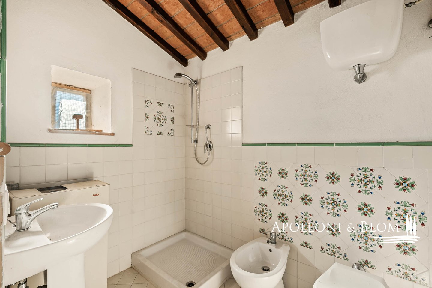 Nebengebäude: Gebäude von ca. 55 qm auf zwei Ebenen mit Limonaia/Pergola, teilweise renoviert mit Wohnbereich mit Küche im Erdgeschoss und 1 Schlafzimmer mit Bad im ersten Stock; Möglichkeit, den Limonaia-Raum in ein zweites Schlafzimmer mit Bad umzubauen