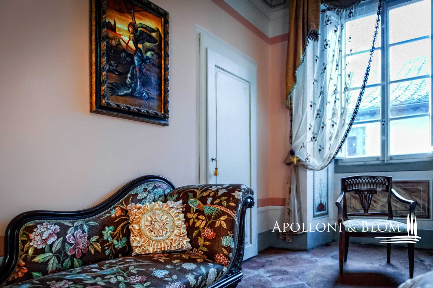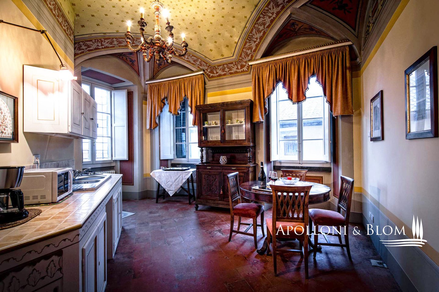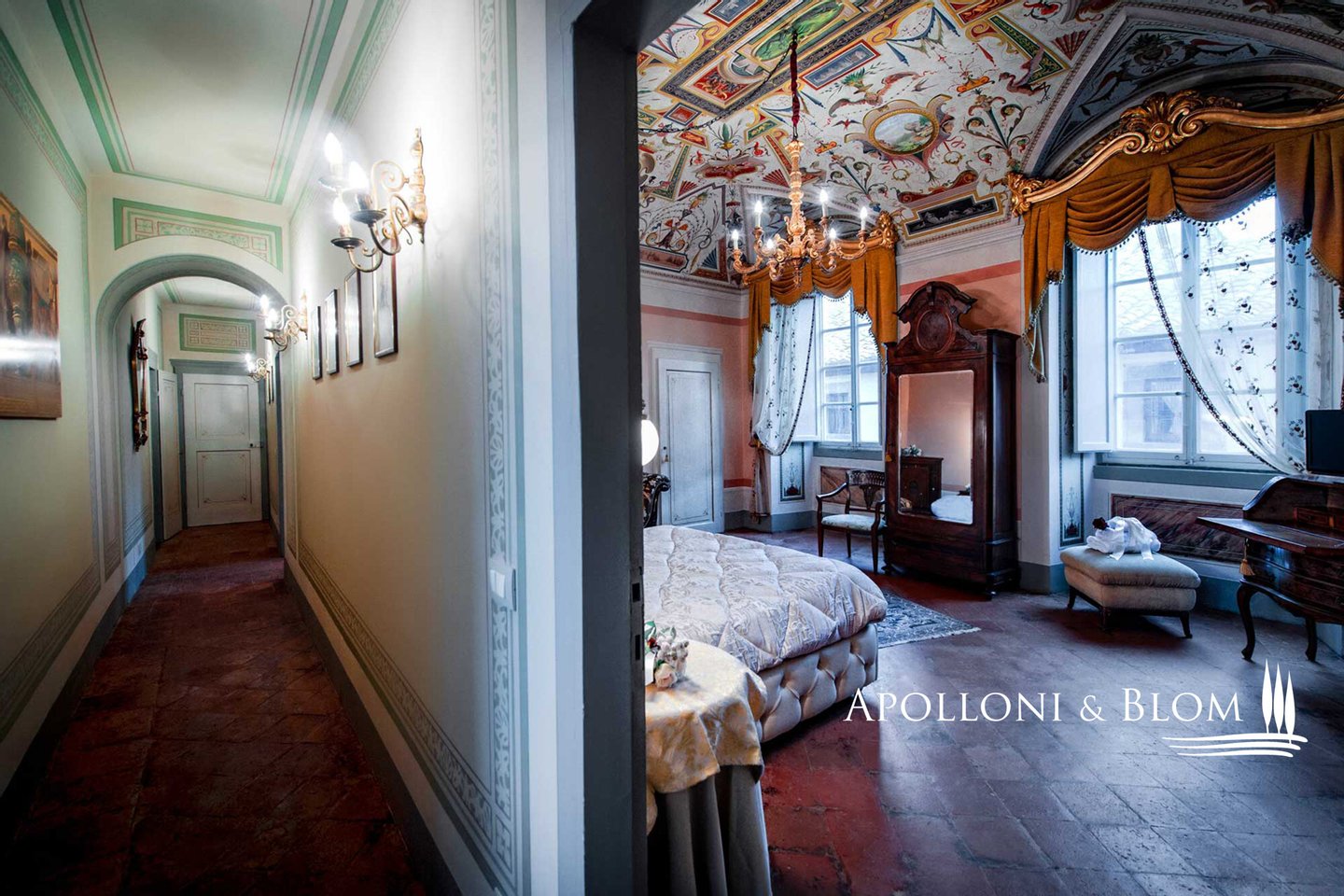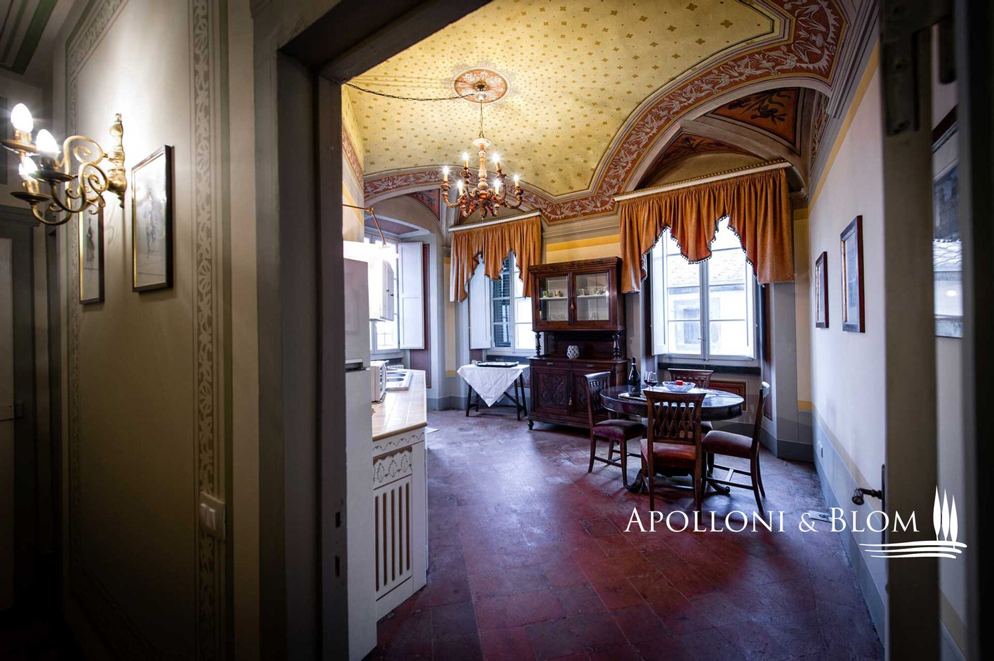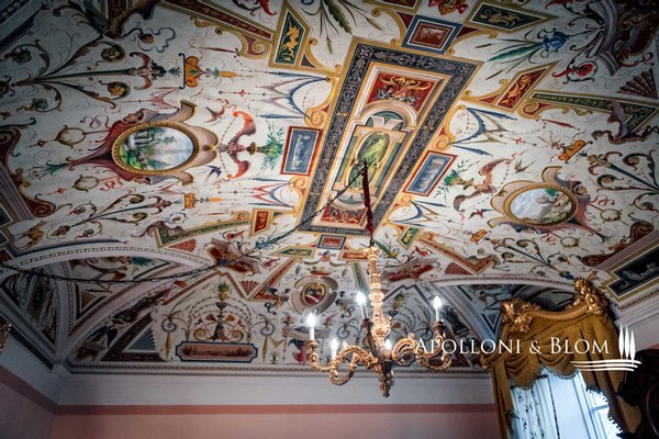 Typ: Wohnung von ca. 200 m² im zweiten Stock eines historischen Gebäudes mit Fresken und Gewölbedecken und geweihter Privatkapelle
