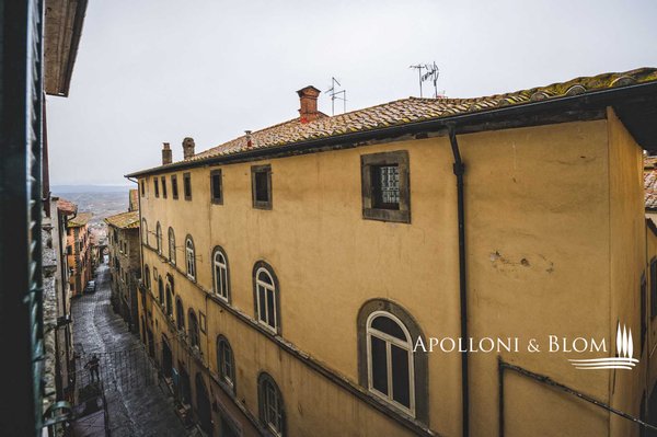 Stock eines Palazzo aus dem 17. Jahrhundert, mit Fresken, Aussicht, Privatkapelle im historischen Zentrum von Cortona, Arezzo, zu verkaufen. In einem der prestigeträchtigsten und perfekt erhaltenen Paläste im Zentrum von Cortona, der ursprünglich im